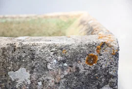 Gefertigt aus französischem Kalkstein (French limestone / pierre calcaire), überzeugt dieser Trog durch seine timeworn finish und die handwerkliche Präzision vergangener Jahrhunderte. Jeder Bearbeitungsschritt erfolgte damals von Hand – ein Zeugnis der traditionellen Steinmetzkunst.