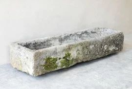 Information alter Trog, alter französischer Trog aus Kalkstein, Trog aus dem 19. Jahrhundert, alte Baumaterialien