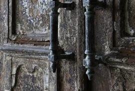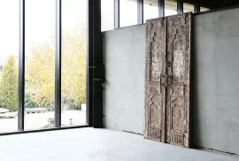 Wir haben einen schönen authentischen Satz antiker ägyptischer Türen, die 100 Jahre alt sind. Diese Holztüren sind schön dekoriert und haben massive gusseiserne Griffe. Echte Hingucker, die einen sehr beeindruckenden Eindruck hinterlassen.