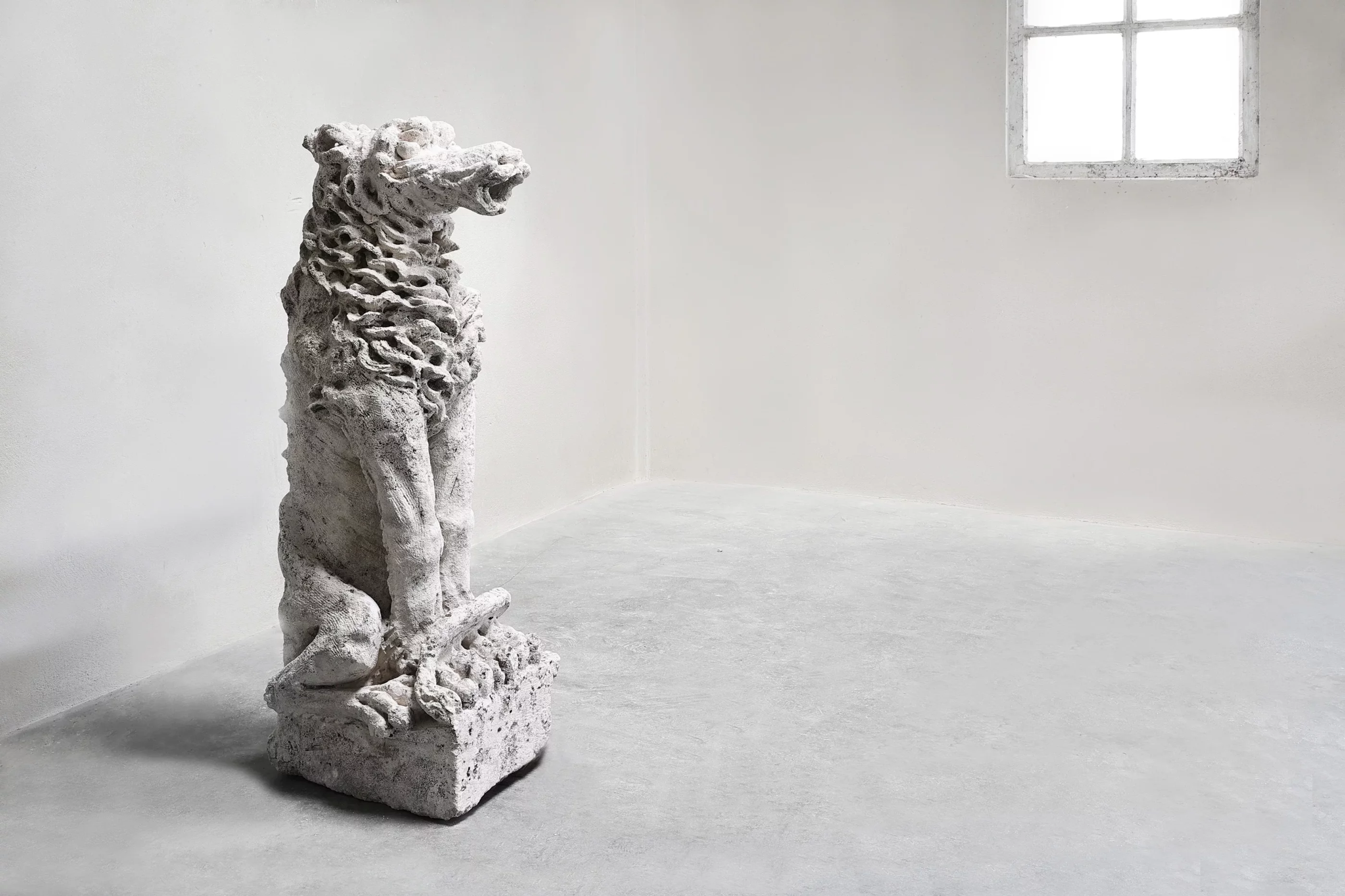 Die Skulptur besitzt eine kraftvolle, schlichte Form und eine gealterte Patina, die ihre Authentizität unterstreicht. Damit ist sie nicht nur ein dekoratives Objekt, sondern auch ein wertvolles Kulturerbe-Stück mit Charakter.