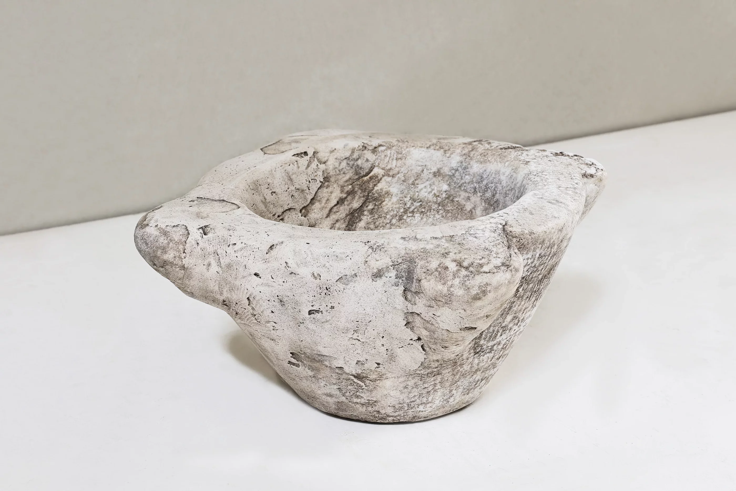 Dieser antike Mörser wurde von Hand aus massivem Naturstein gehauen und verkörpert echtes Handwerk und Authentizität. Ursprünglich als funktionales Werkzeug in Küchen und Werkstätten genutzt, ist er heute ein besonderes dekoratives Stück mit historischem Wert.