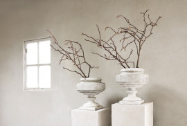 Gefertigt aus weißem Marmor, folgt dieses Paar einer zurückhaltenden, architektonischen Formensprache, wie sie um 1900 im Umfeld klassizistischer Wiederaufnahmen verbreitet war. Die klaren Profile und ruhigen Proportionen unterstützen eine saubere Integration in Planung und Styling.