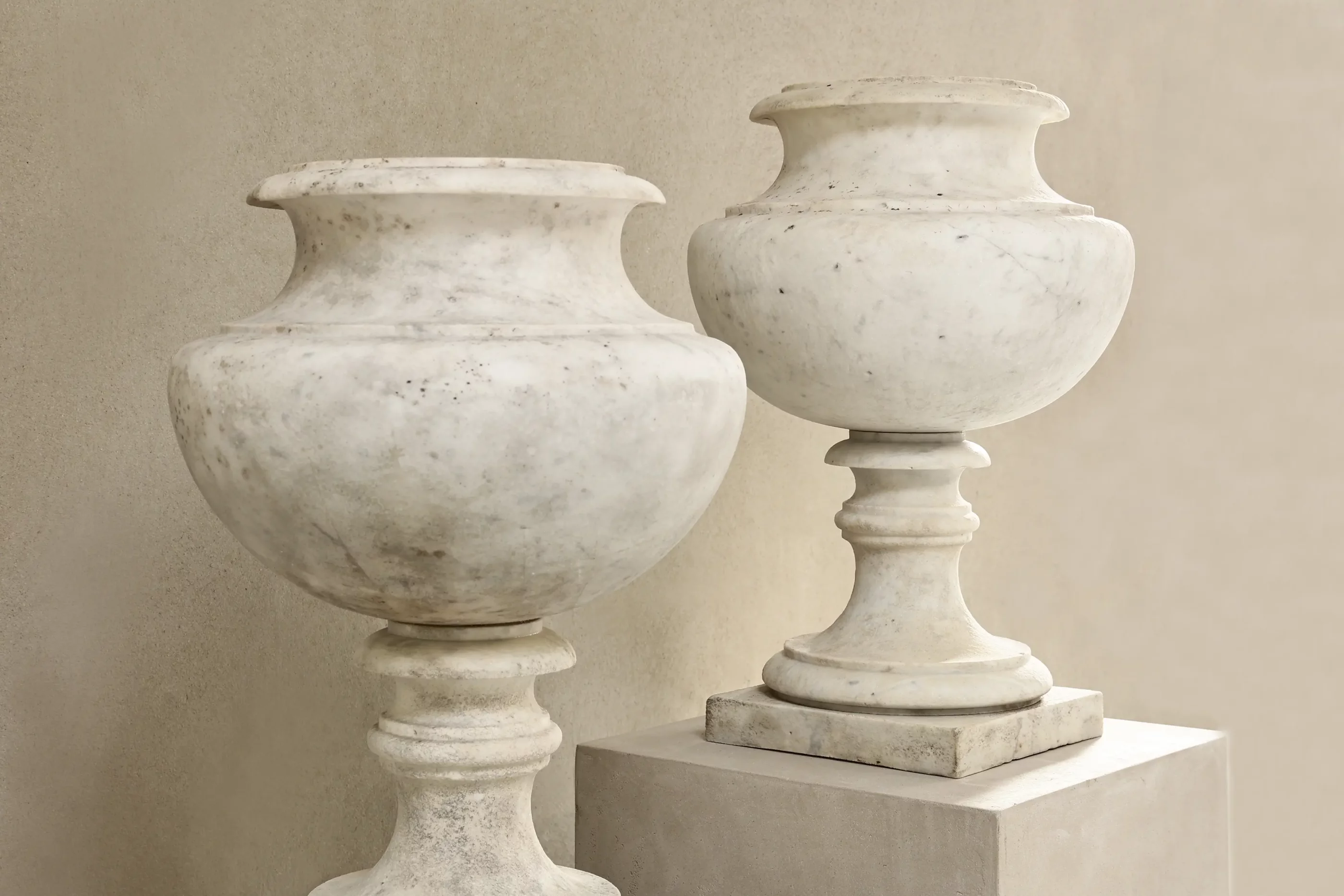 Diese wunderschönen Marmorgefäße bringen sofort Ruhe, Klasse und Raffinesse in jeden Raum. Mit ihrer klassischen Urnenform und den feinen natürlichen Maserungen des Steins strahlen sie pure Eleganz aus. Ob im stilvollen Interieur, im Eingangsbereich, Wintergarten oder auf einer luxuriösen Terrasse – diese Vasen ziehen auf dezente, aber beeindruckende Weise die Aufmerksamkeit auf sich.