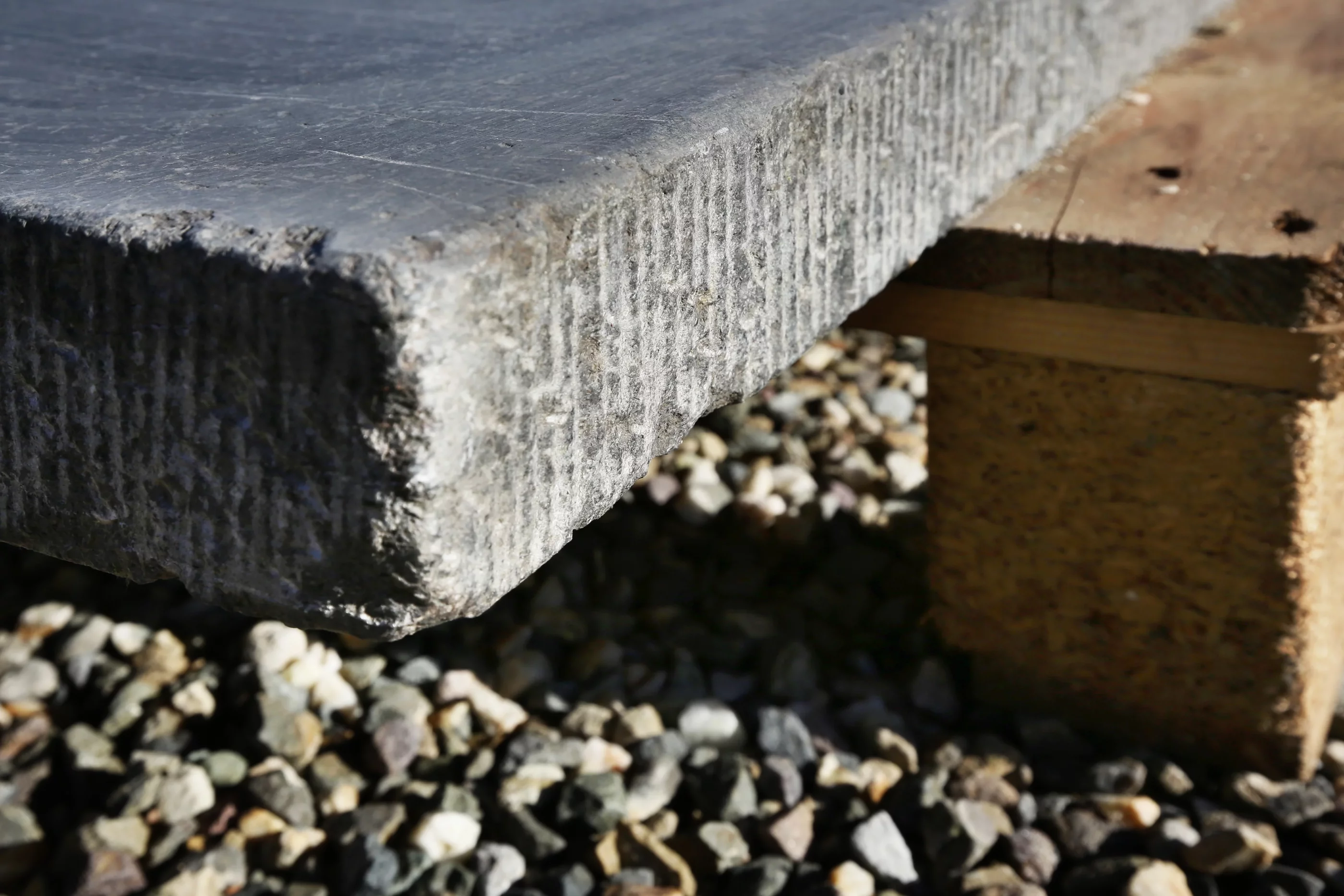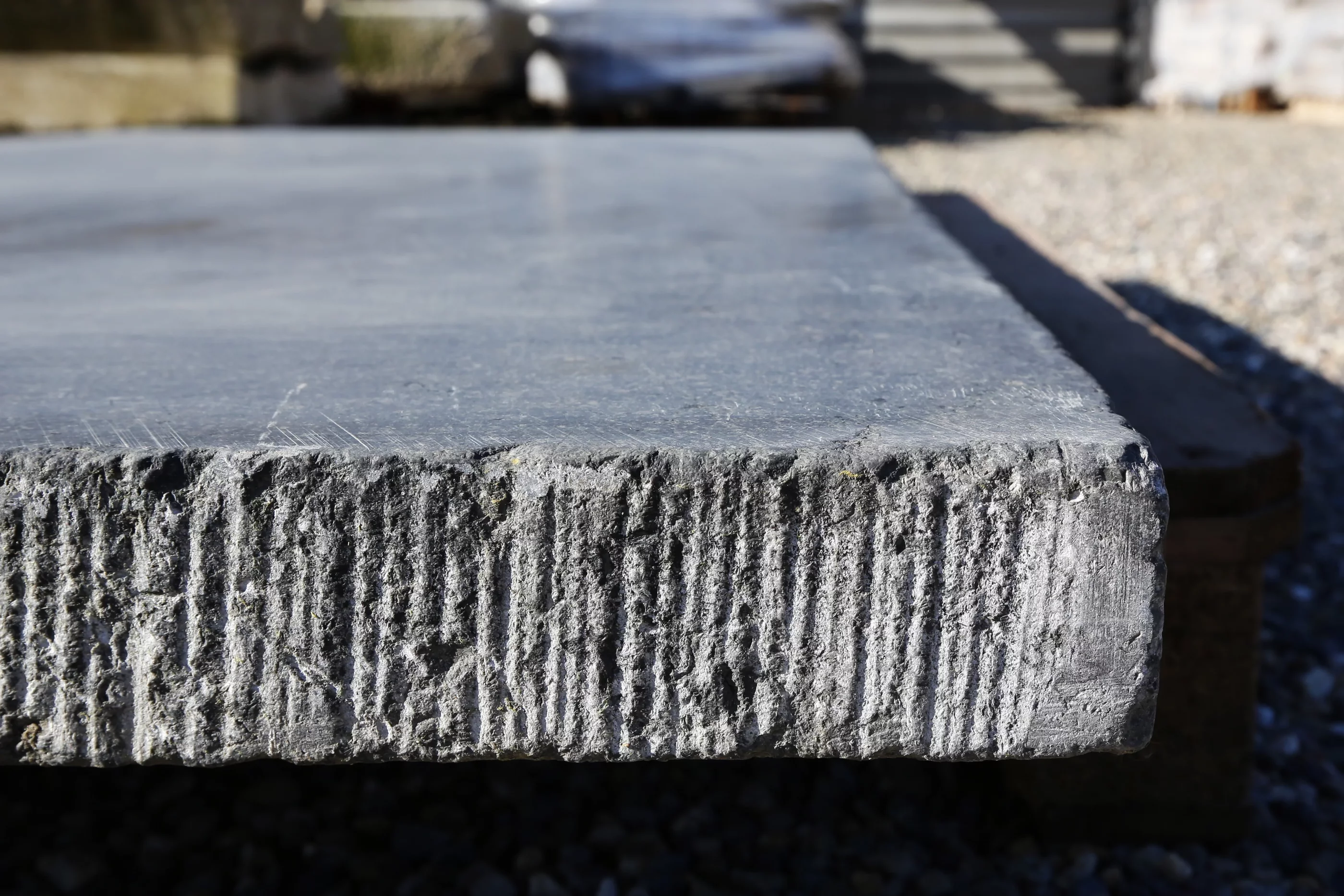 Wir haben ein wunderschönes belgisches Blaustein Blatt in unserer Kollektion, das für viele Anwendungen verwendet werden kann. Das Blatt ist 5 cm dick und die Seiten sind fein gerippt. Belgischer Blaustein, auch Arduin genannt, ist ein wunderschöner Naturstein aus Belgien und hat viele Möglichkeiten im Finish. Dieses plateau kann als Küchentheke oder als Teil eines Badmöbels verwendet werden.