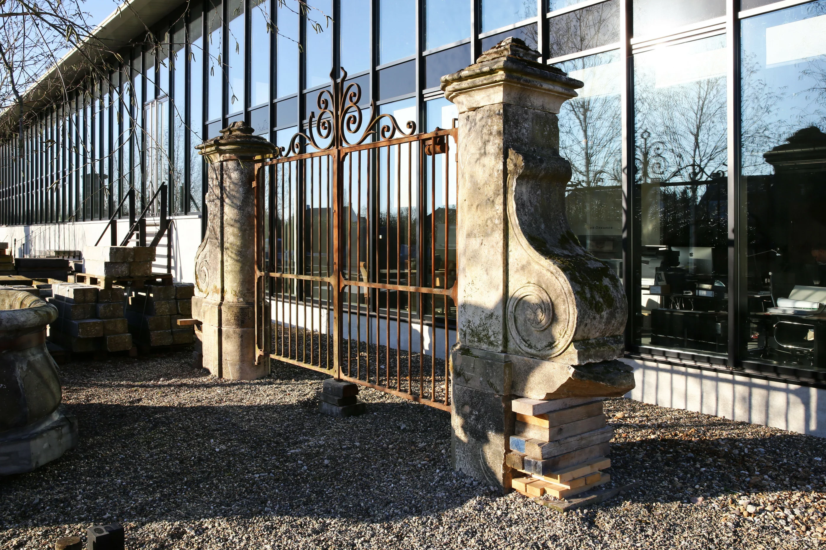 Wir haben ein wunderschönes antikes Tor mit Pilastern aus dem 18. Jahrhundert in unserem Sortiment! Das Gusseisentor ist elegant und im Barockstil. Die Kombination der französischen Kalksteinpilaster mit dem Gusseisentor ist robust und stattlich und bietet Charakter und Aussehen! Ein schönes Ganzes für alle, die sich für alte Baumaterialien begeistern.