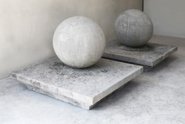 Eine beeindruckende Set antiker Kugeln von Belgischer blaustein mit einem belgischen Hartsteinplateau. Ein einzigartiges Set, das für verschiedene architektonische Anwendungen geeignet ist.