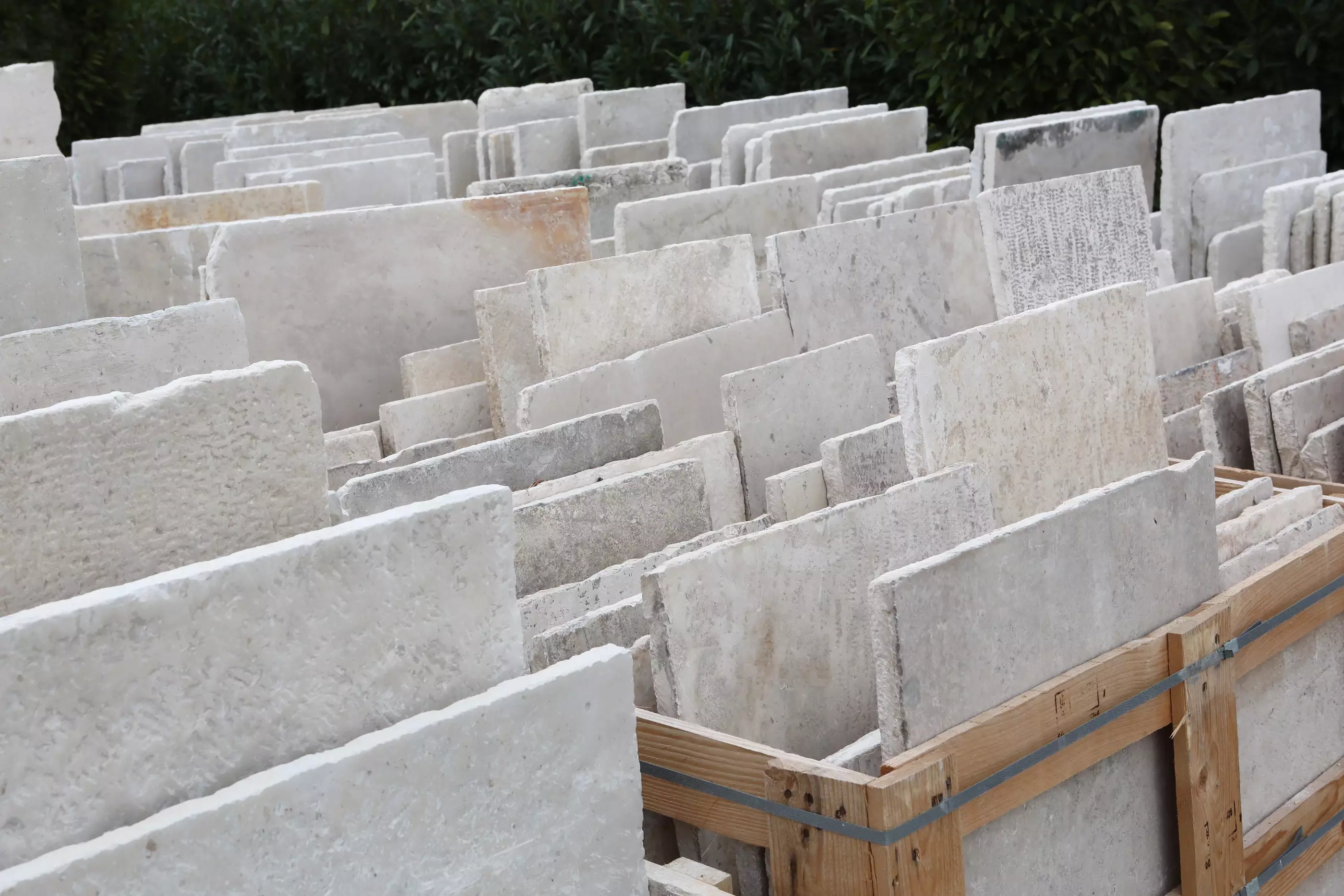 Unsere alte Kalksteinboden, bekannt als Dalles de Bourgogne, stammen aus der französischen Landschaft und wurden sorgfältig aus historischen Landhäusern rückgewonnen. Diese antike Bodenplatten bestehen aus langlebigem Kalkstein und sind in zufälligen Abmessungen erhältlich. Ihre eleganten Weiß- und Beigetöne verleihen jedem Raum eine zeitlose Schönheit.