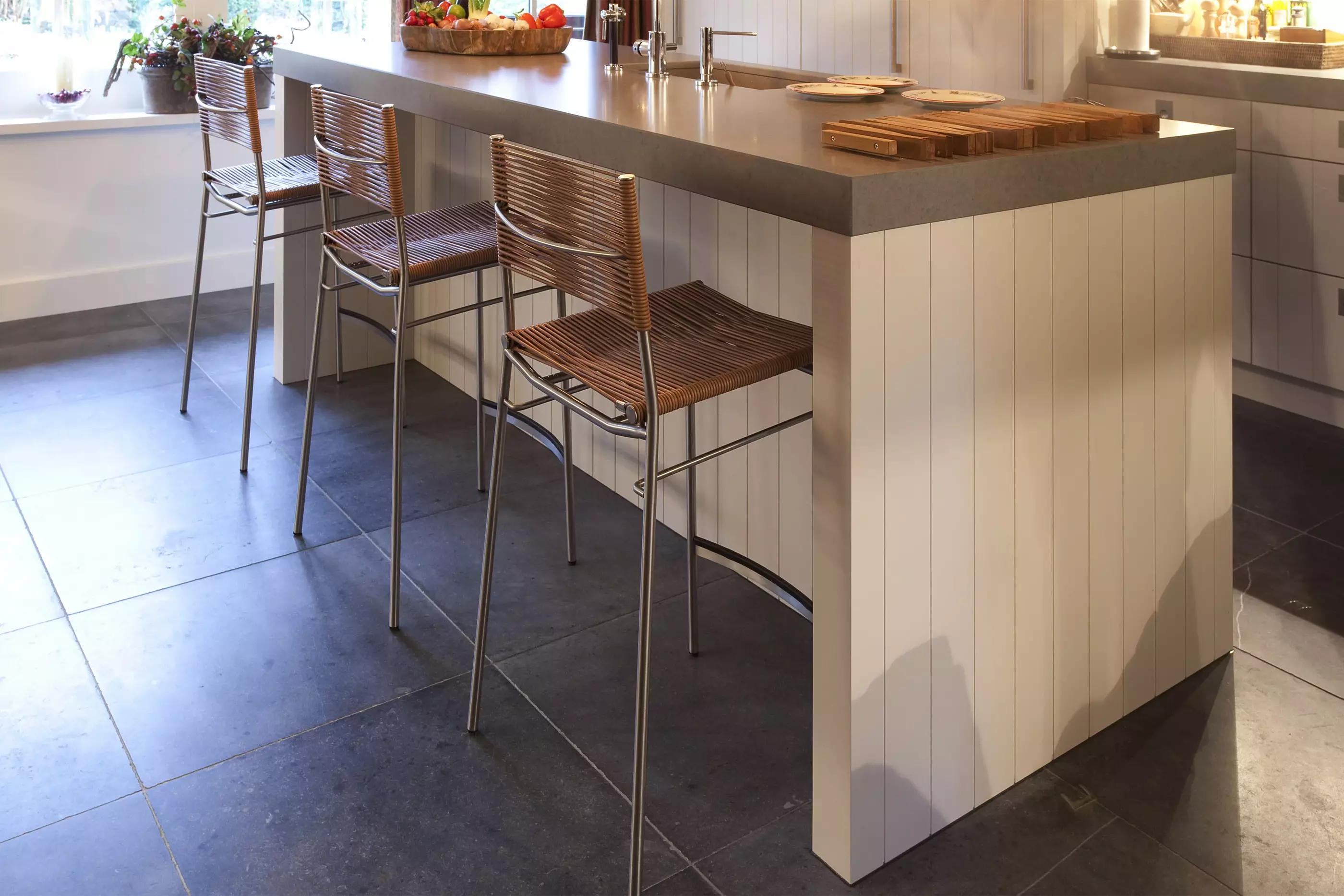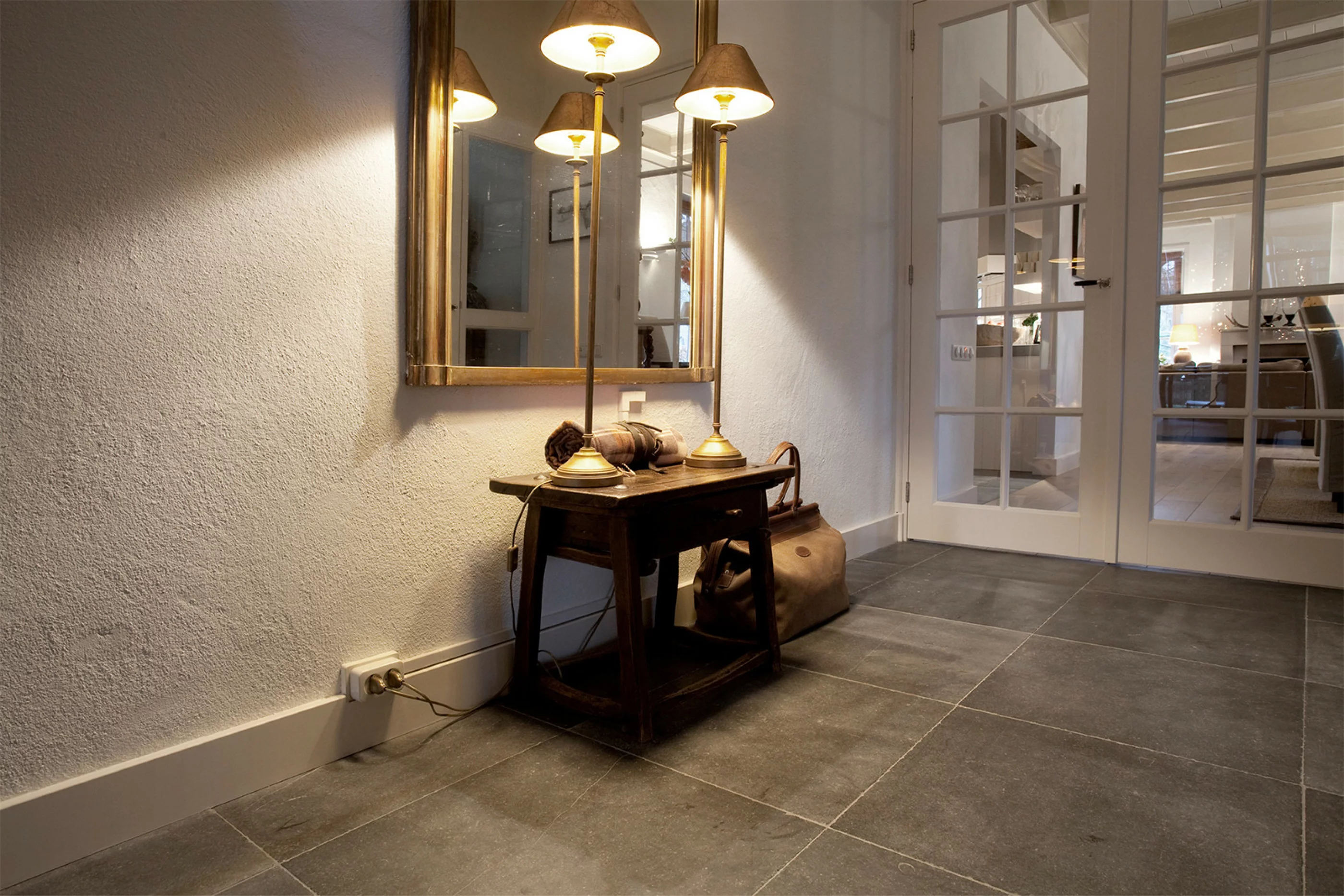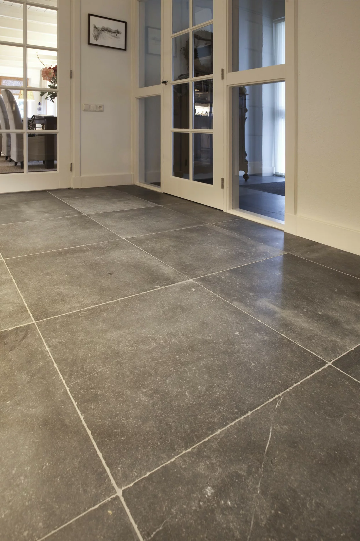 Wir schleifen unseren "Oud Brabant" Boden mit einer sehr großen Diamantkörnung, damit der Boden matt bleibt. Wir sind bezaubert von ruhigen, matten Natursteinböden. Wir können diesen geschliffenen belgischen Freestone-Boden in allen Größen liefern.