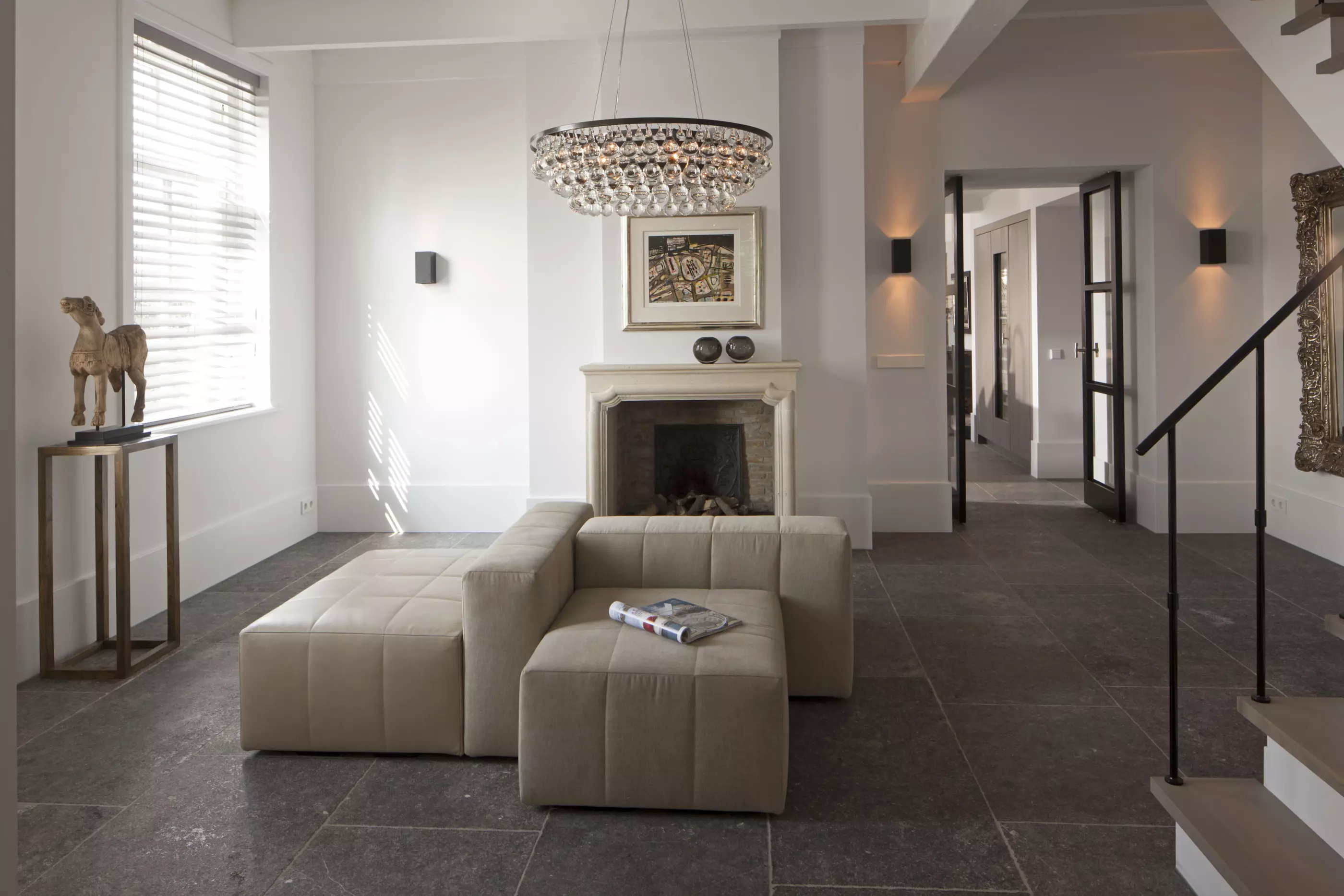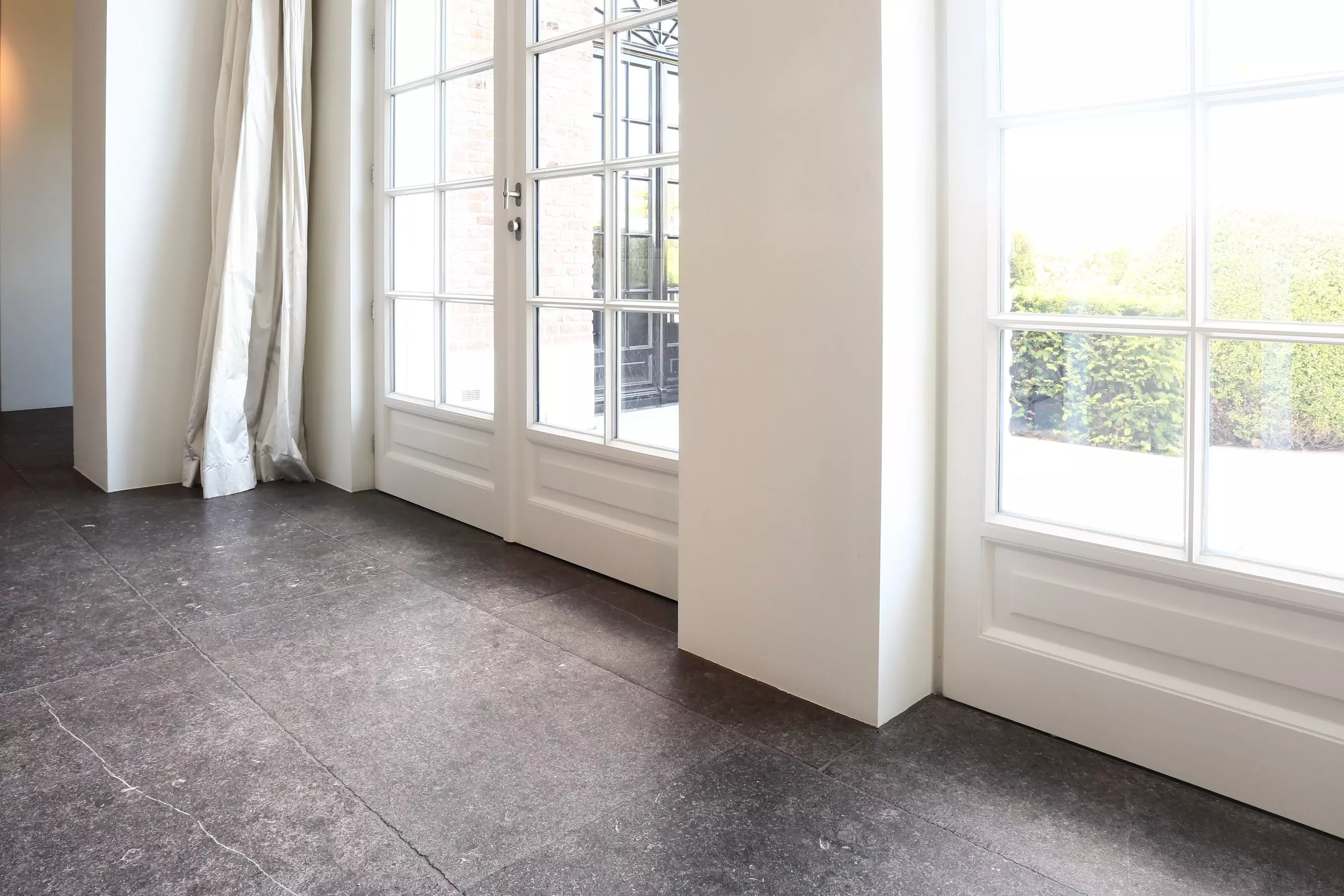 Unser Boden L'Authentique ist ein Natursteinboden aus belgischem Blaustein, den wir komplett manuell altern lassen. Wir bearbeiten die Blaustein-Bodenfliesen mit verschiedenen Techniken, um dieses Ergebnis zu erzielen. Als Ausgangsmaterial verwenden wir Blaustein aus dem Lütticher oder Blausteinbecken der bedeutenden Karrieren im Hennegau wie Carrieres de Hainaut oder Carriere de Pierre Bleue Belge. Wir bearbeiten dann dieses schöne Grundmaterial in einer schönen Mischung aus Brennen, Büchsen und Satinieren.