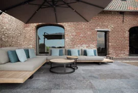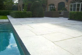 Wegen der Sonne und des Regens werden die blauen Steinböden immer grau werden und durch das Leben auf ihm zu Fuß, bbq und schaffen eine schöne Patina mit Charakter.