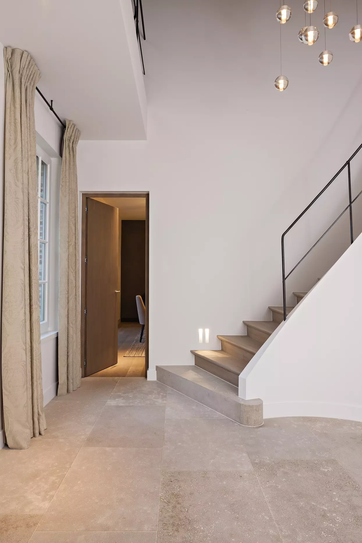 Dieser schöne Boden ist frostsicher und aufgrund seiner sandgestrahlten Oberfläche nicht glatt und daher ideal für Außenterrassen.