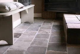 Unsere alten niederländischen gesmoorde Estrikken sind einzigartige antike Terrakottafliesen, die in traditionellen Öfen gesmoord wurden. Durch diesen Prozess oxidiert das Eisen im Ton und verleiht jeder Fliese die charakteristische grau-blaue Farbe. Diese historischen Fliesen bringen einen authentischen, zeitlosen Look in jeden Raum und eignen sich ideal für klassische und moderne Innenräume.