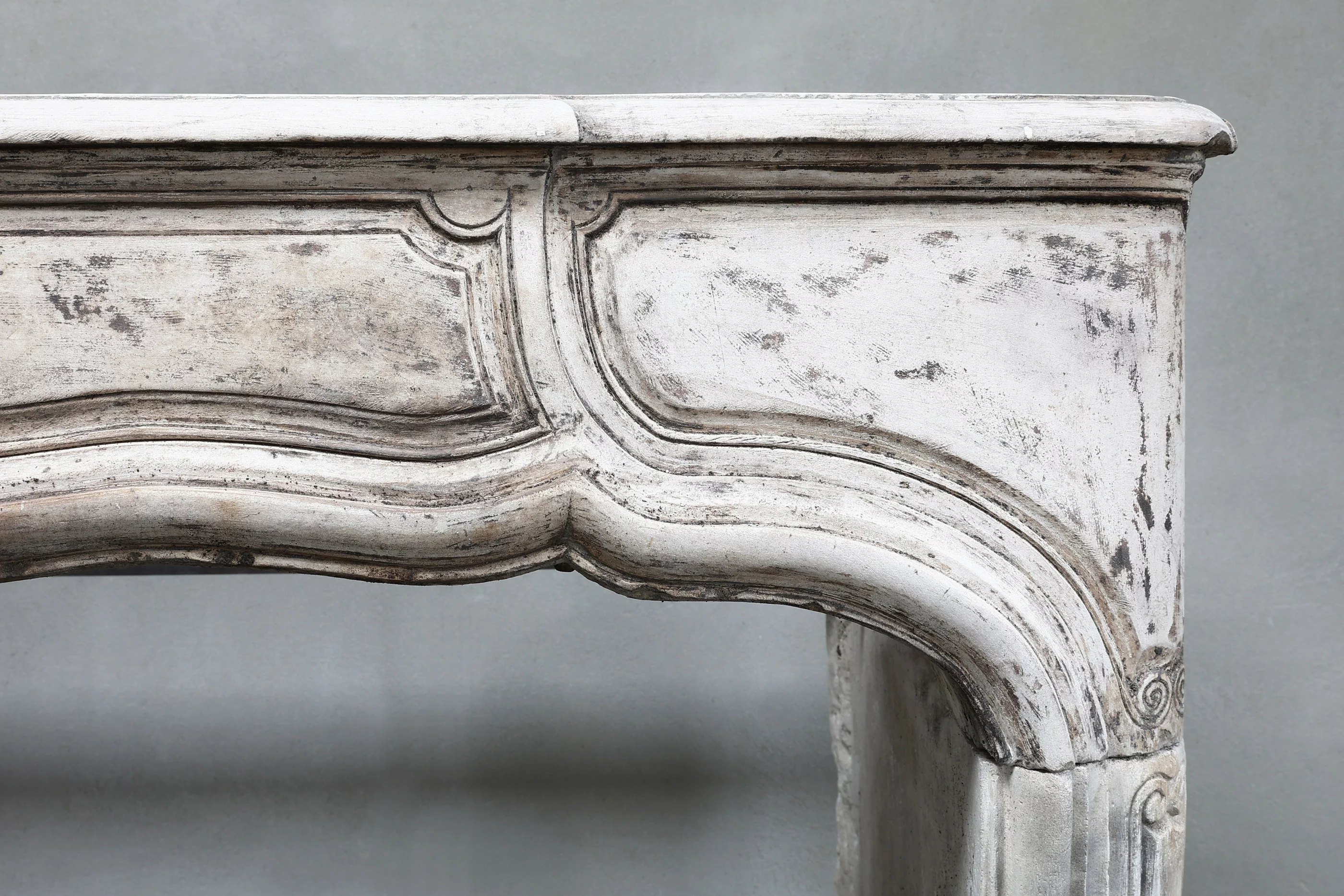 Schöner eleganter Kamin mit verschiedenen Dekorationen im vorderen Teil und schönen Formteilen! Dieser antike Kamin stammt aus dem 19. Jahrhundert und ist ganz im Stil Ludwigs XV. Die schönen runden Formen sorgen für einen authentischen und historischen Look!