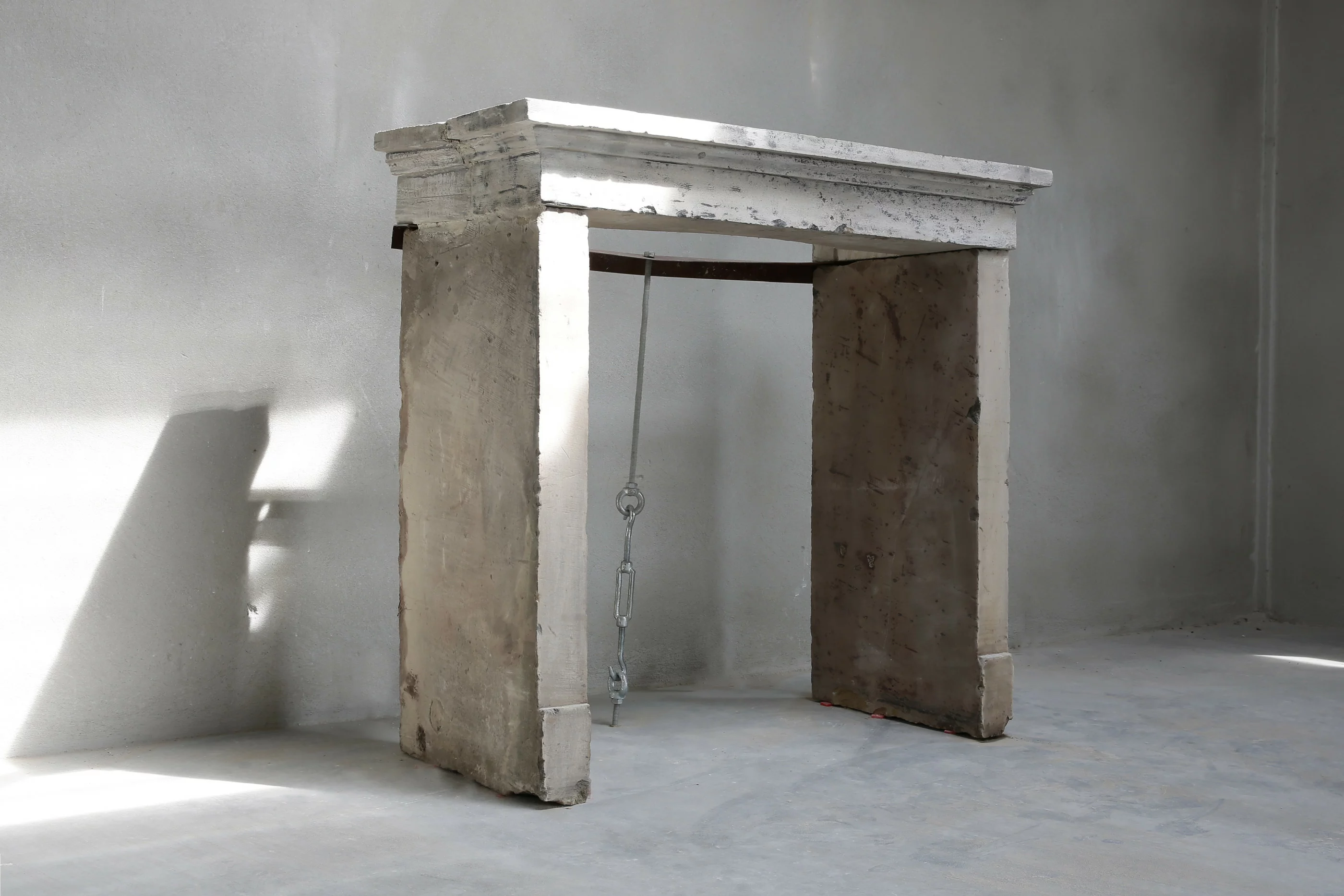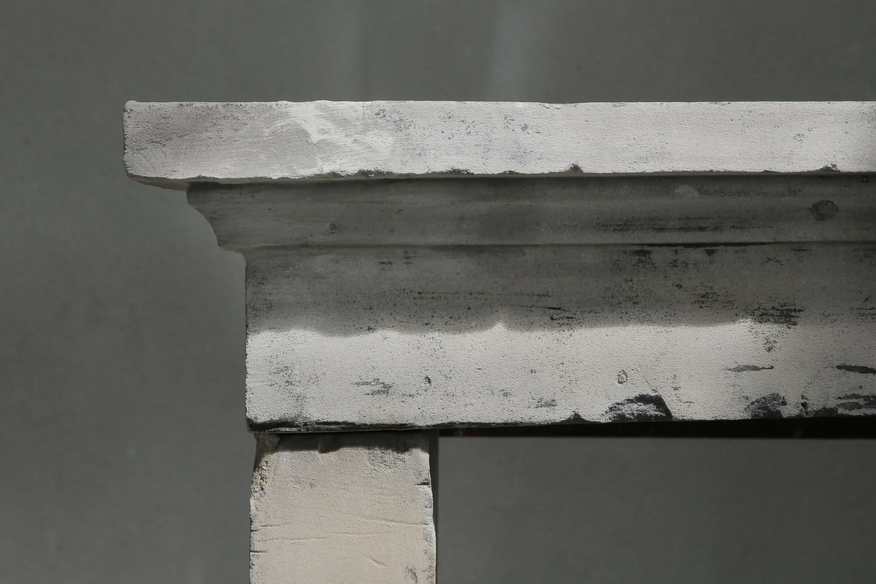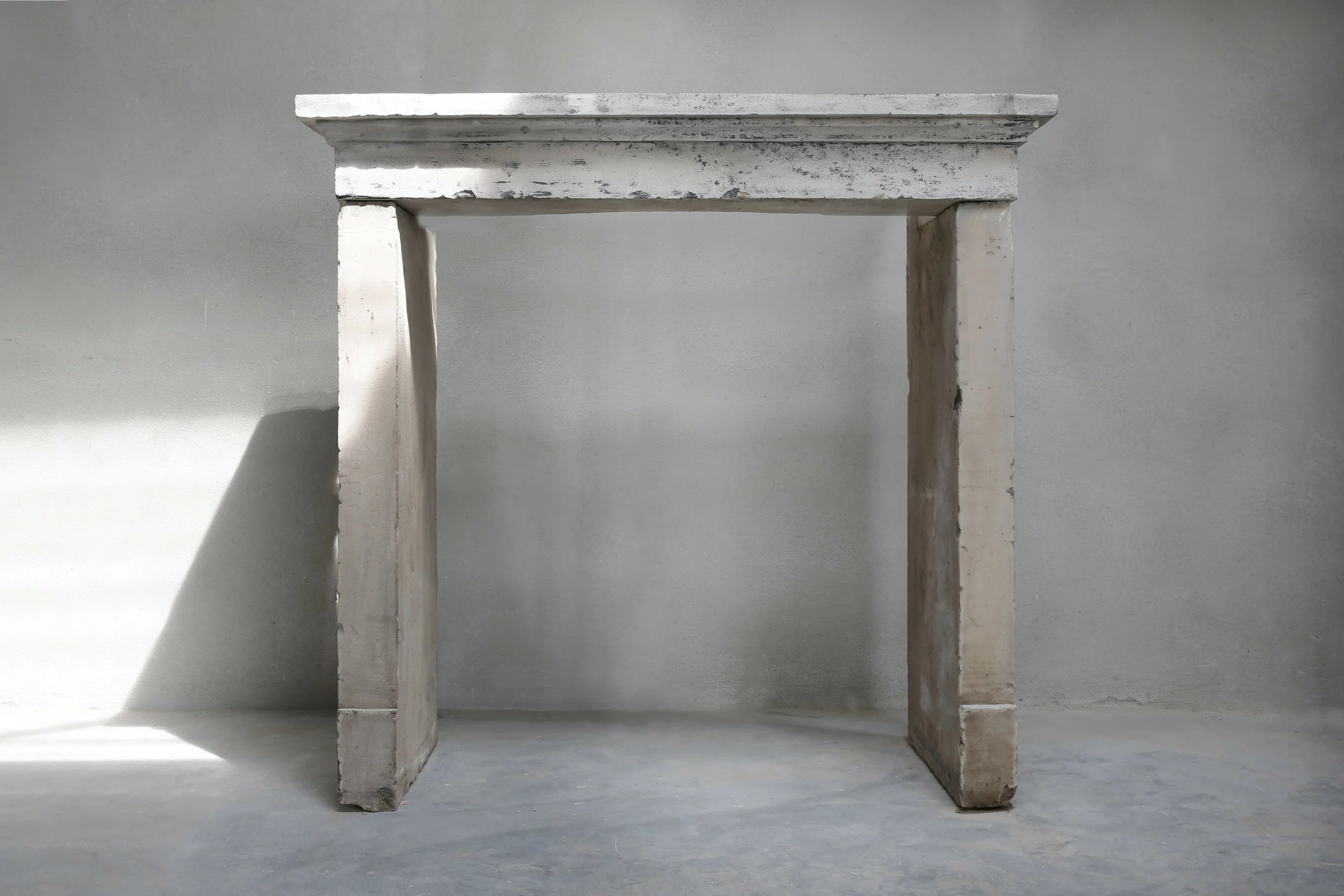Schöner patinierter antiker Kamin aus französischem Kalkstein. Der Kamin ist einfach und ruhig. Die Oberseite hat schöne Linien und eine schöne Patina. Die Beine sind gerade und passen gut zur Oberseite. Diese Bauernbewertung wird auch Campagnarde genannt. Eine schlichte und strenge Optik sorgt dafür, dass dieser Kamin sowohl in ländlichen als auch in modernen Wohnhäusern Platz findet.