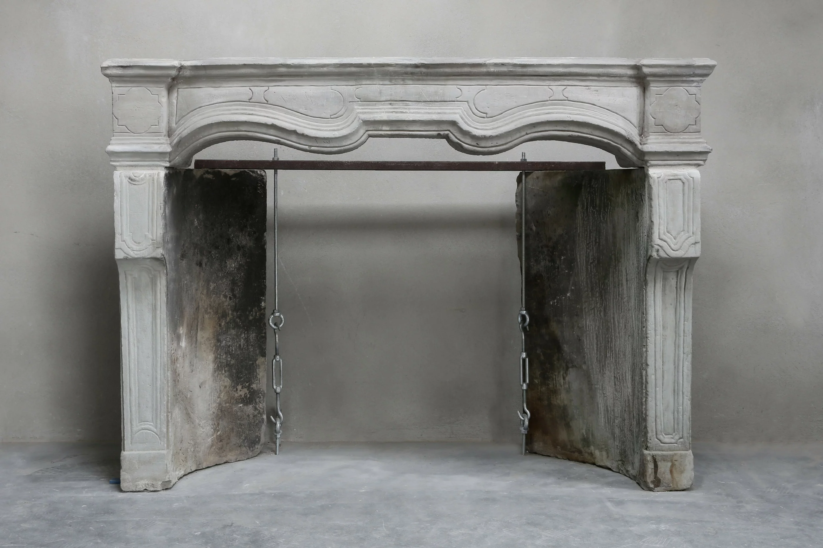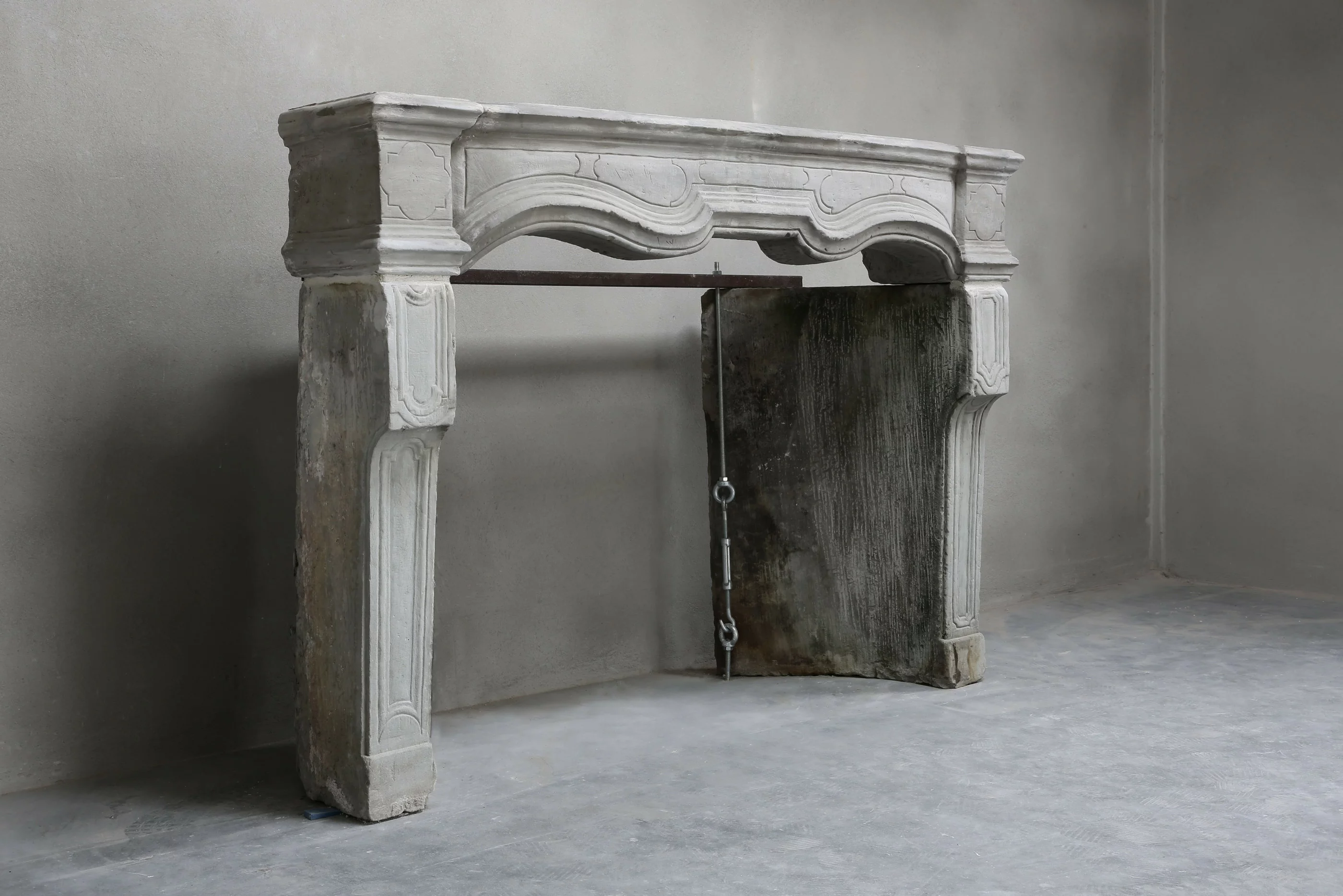 Der Kamin ist in der Mitte gebrochen, wurde aber von unserem Restaurator so gut repariert, dass man ihn kaum mehr sieht. Wir können daher den Kamin zu einem attraktiven Preis anbieten.