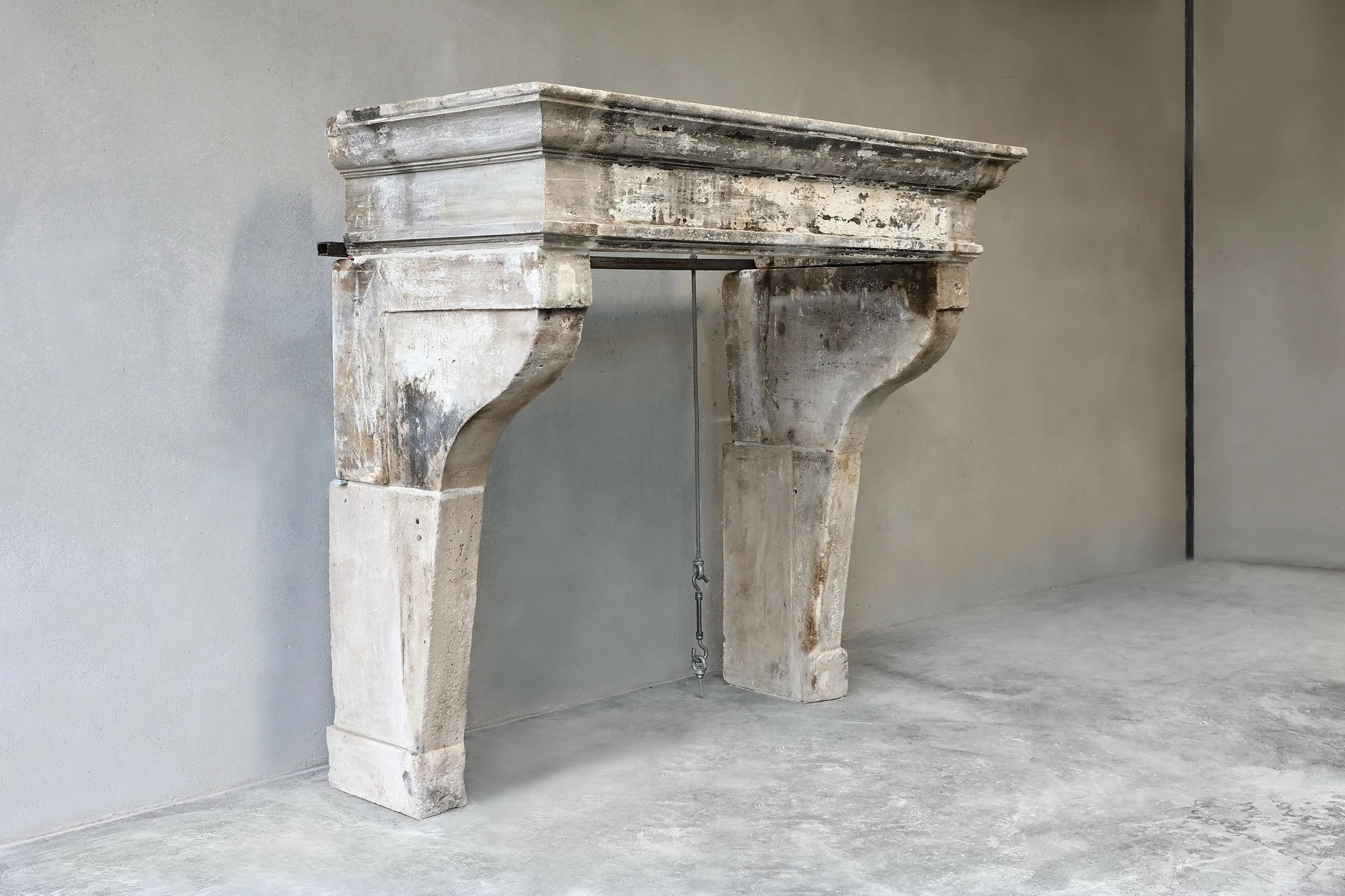 Sehr schöner robuster Kamin aus französischem Kalkstein aus dem 19. Jahrhundert. Dieser antike Kamin im Campagnarde-Stil hat eine schöne Patina und Farbgebung. Ein Kamin im rustikalen Look.