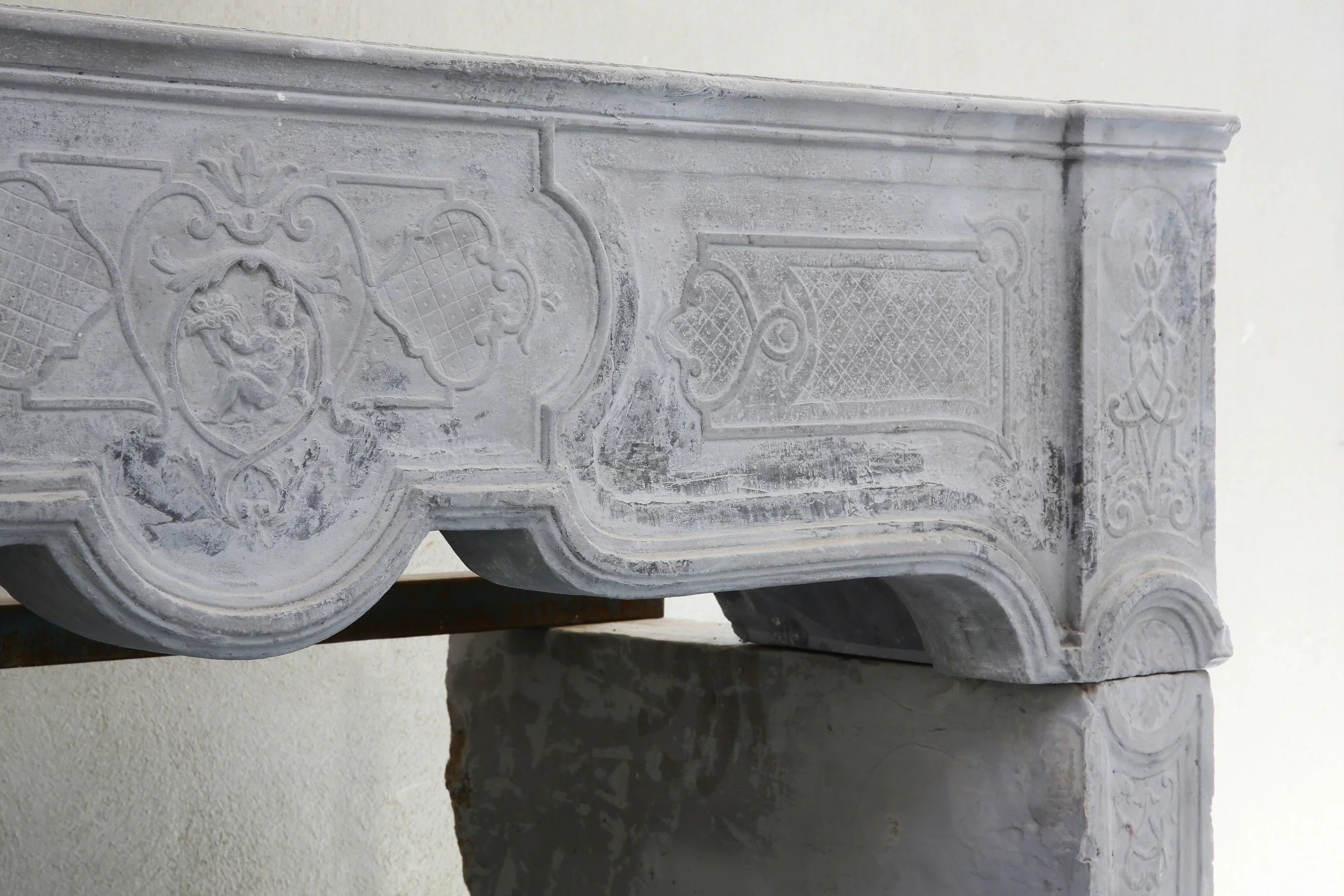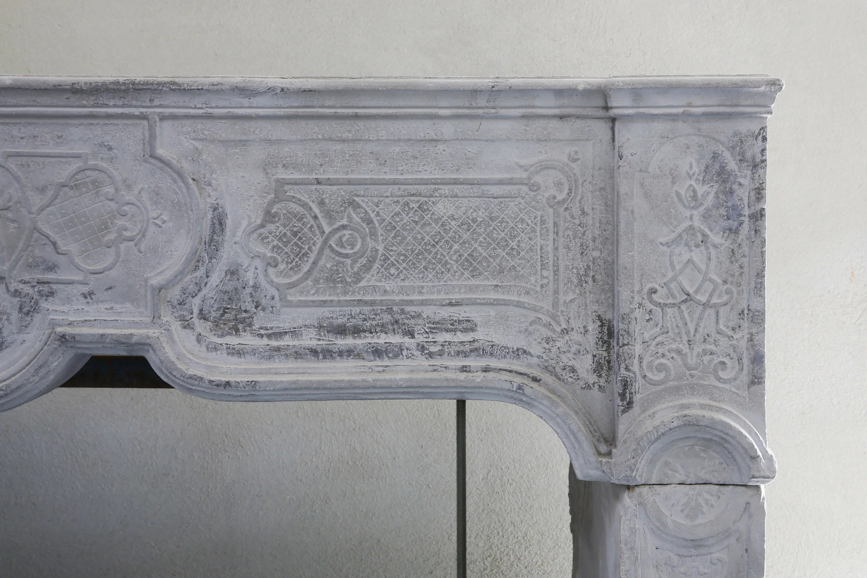 Schöner antiker Kamin aus französischem Marmor mit schönen Ornamenten und Dekorationen. Dieser elegante Kamin stammt aus dem 19. Jahrhundert und ist im Stil von Louis XV. Die schöne graue Farbe, Form und Dekoration machen dieses Möbelstück zu einem sehr wertvollen Möbelstück für ein Interieur.