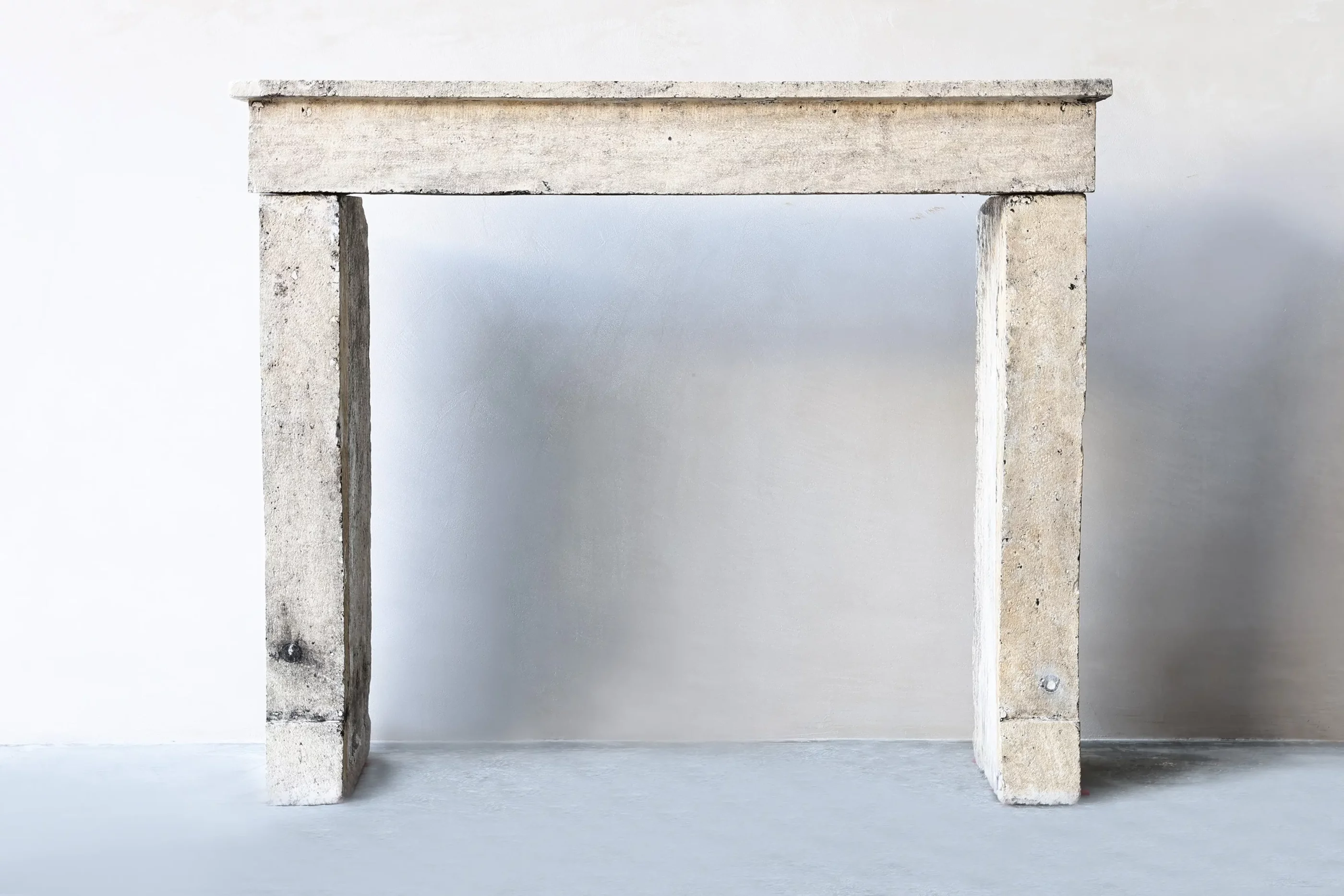 Dieser antike Kalkstein-Kamin ist ein charaktervolles und zeitloses Architekturstück mit einer schlichten, eleganten Ausstrahlung. Der Kamin wurde aus massivem Kalkstein gefertigt und zeigt eine wunderschöne authentische Patina, die durch jahrelange Nutzung und natürliche Alterung entstanden ist. Dank seiner klaren Linien und zurückhaltenden Formgebung passt dieser Kamin aus dem 19. Jahrhundert sowohl in klassische, ländliche als auch in moderne Interieurs.