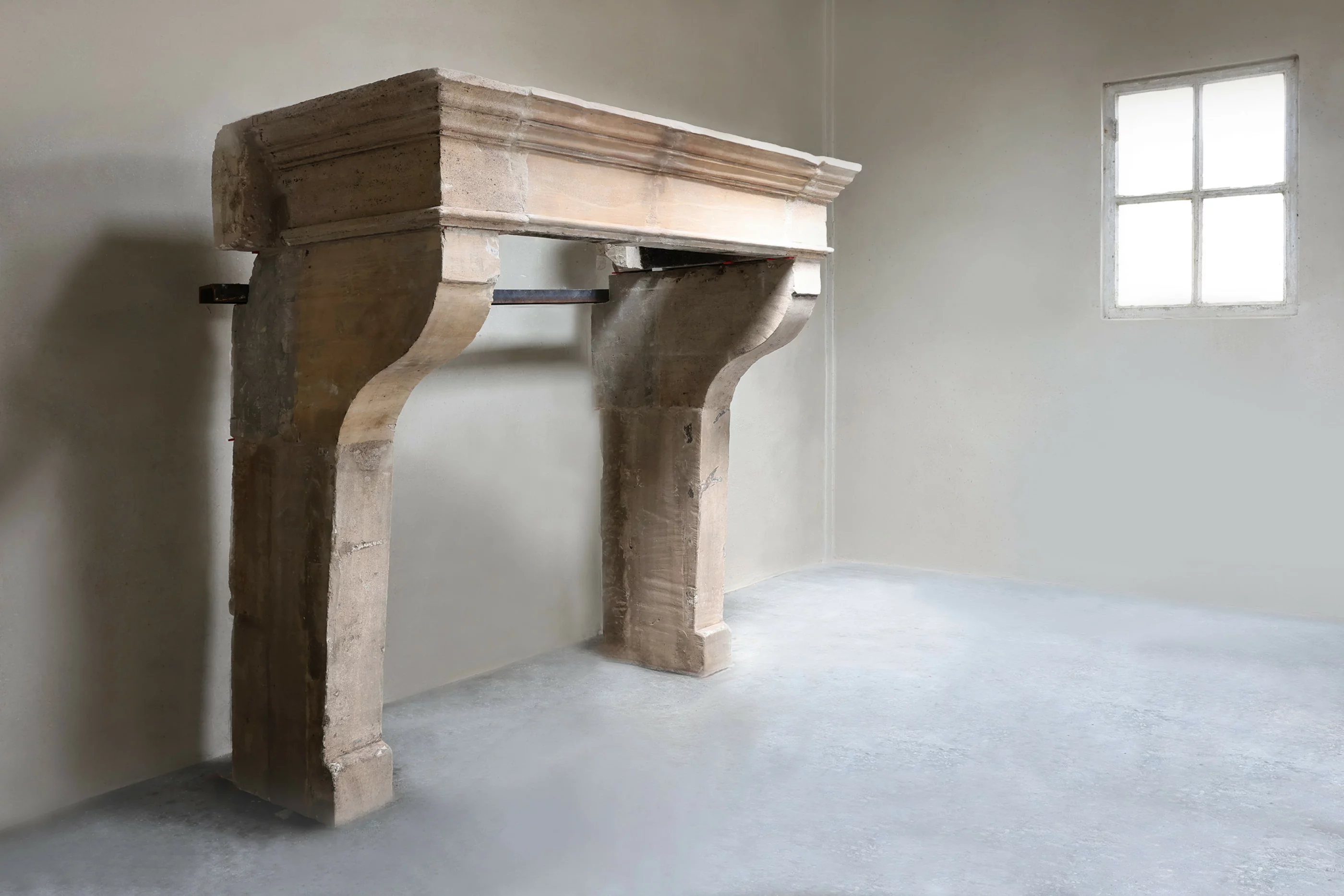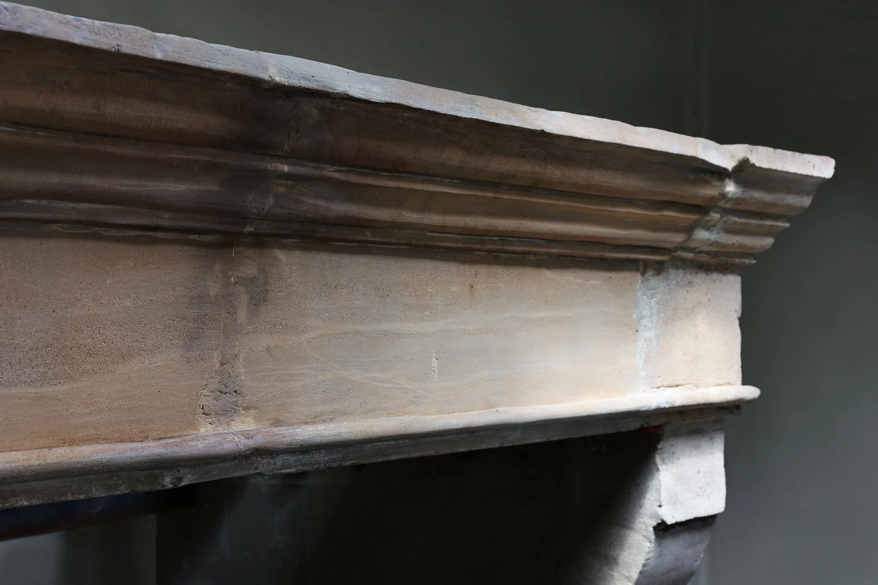 Wunderschöner antiker französischer Kamin aus dem 19. Jahrhundert, gefertigt aus echtem Kalkstein. Dieser robuste Kamin im Campagnarde-Stil verleiht jedem Interieur sofort Charme und Charakter. Ein einzigartiges Stück mit warmer, ländlicher Ausstrahlung. Die Größe dieses Kamins passt zu vielen Innenräumen. Wir können diesen Kamin zu einem sehr attraktiven Preis anbieten, da er Risse aufweist, aber fachmännisch restauriert wurde.