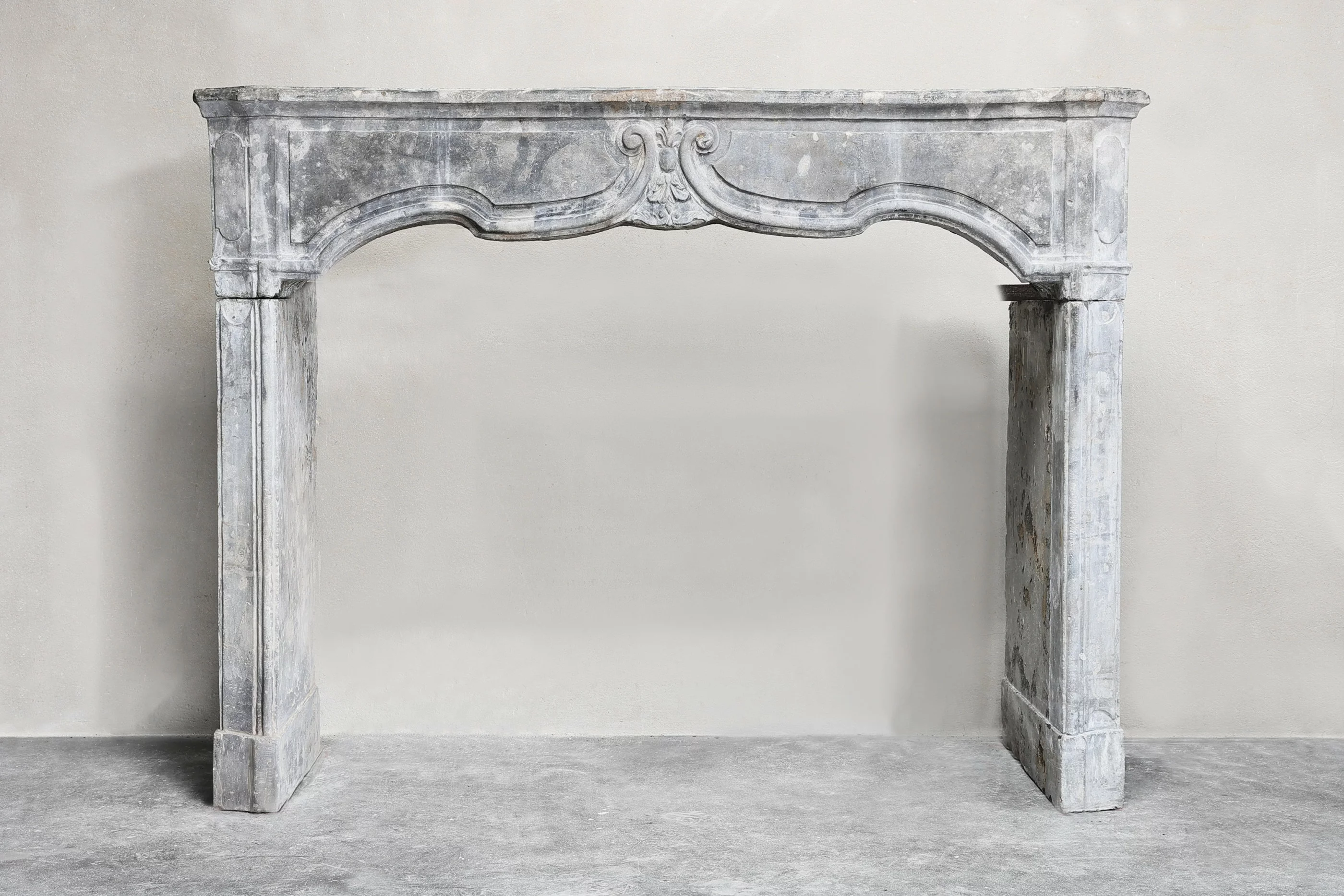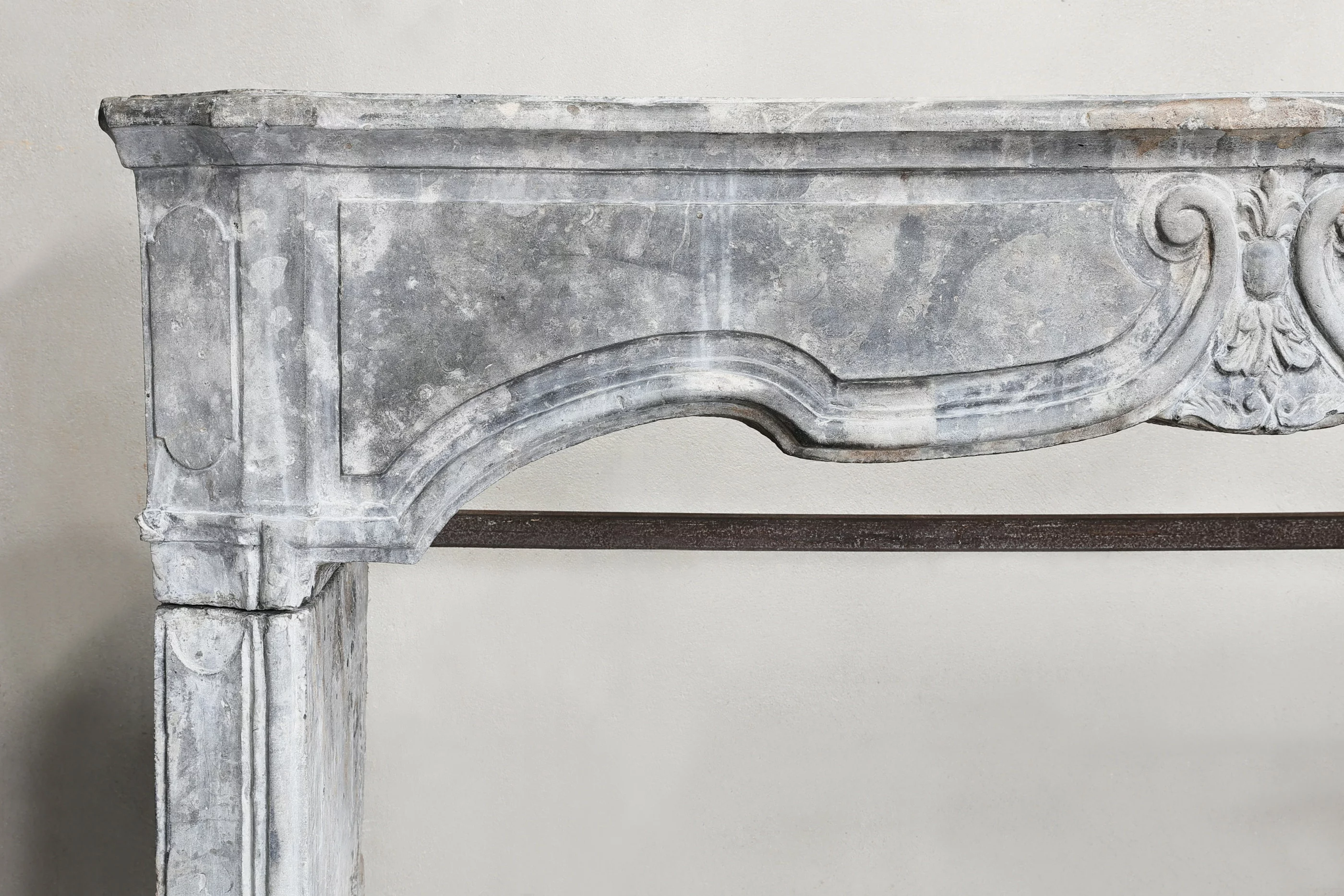 Ein wunderschöner antiker Kaminmaske aus grauem Marmorstein aus dem 19. Jahrhundert strahlt zeitlose Eleganz und historischen Charme aus. Dieser handgeschnitzte Kamin ist nicht nur ein funktionales Element in einer Inneneinrichtung, sondern auch ein wertvolles Möbelstück, das die Geschichte und Handwerkskunst der damaligen Zeit widerspiegelt.