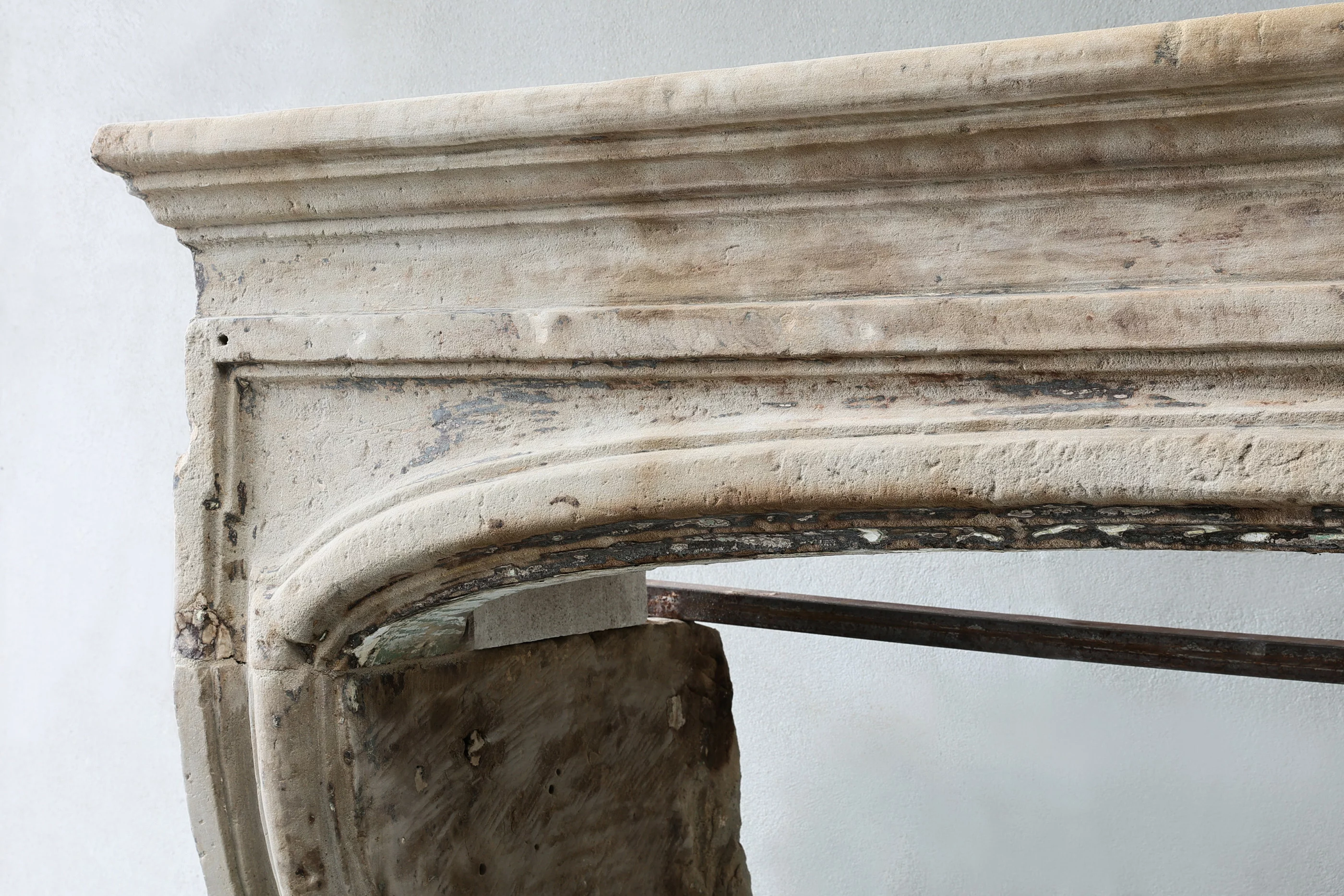 Wunderschöner antiker Kamin aus französischem Kalkstein aus dem 19. Jahrhundert. Ein Kamin mit einer schönen Form und Linienführung. Die warme Farbe und die Authentizität dieses Mantels sorgen für ein attraktives Erscheinungsbild. Dieser Kaminsims ist im Stil Ludwigs XIV. gehalten und hat eine Breite von 184 cm.