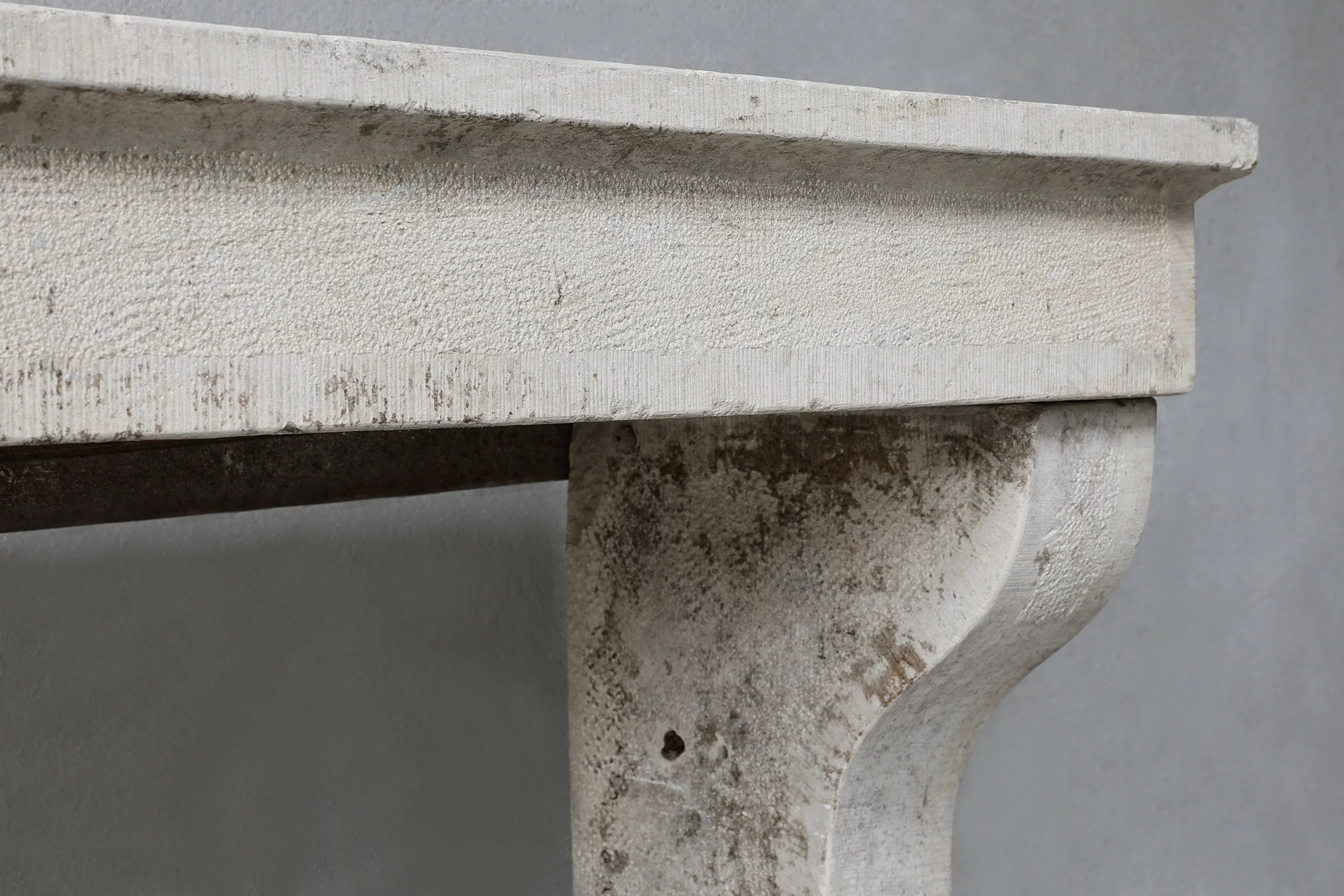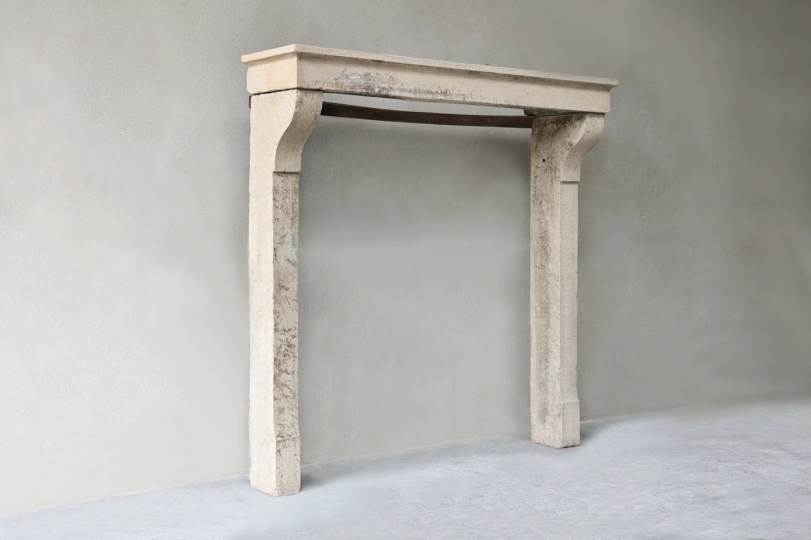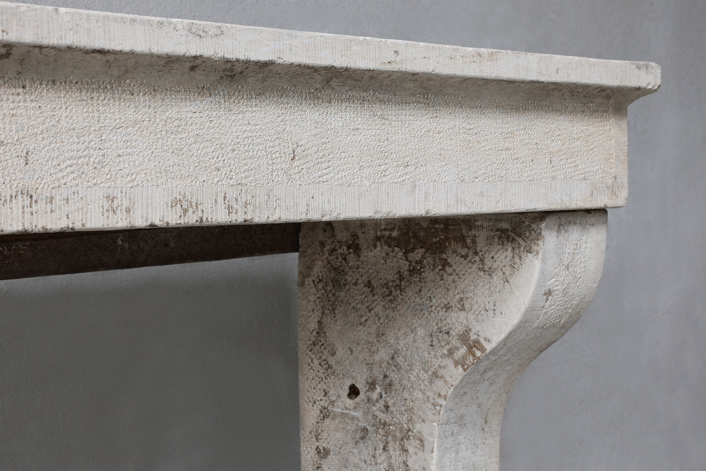 Wunderschöner antiker französischer Kalkstein Kamin aus dem 19. Jahrhundert! Ein Kaminsims mit ruhiger Ausstrahlung und schöner warmer Farbgebung. Dieser antike Kamin ist kompakt und schlicht und ein wertvolles Möbelstück für jedes Interieur!