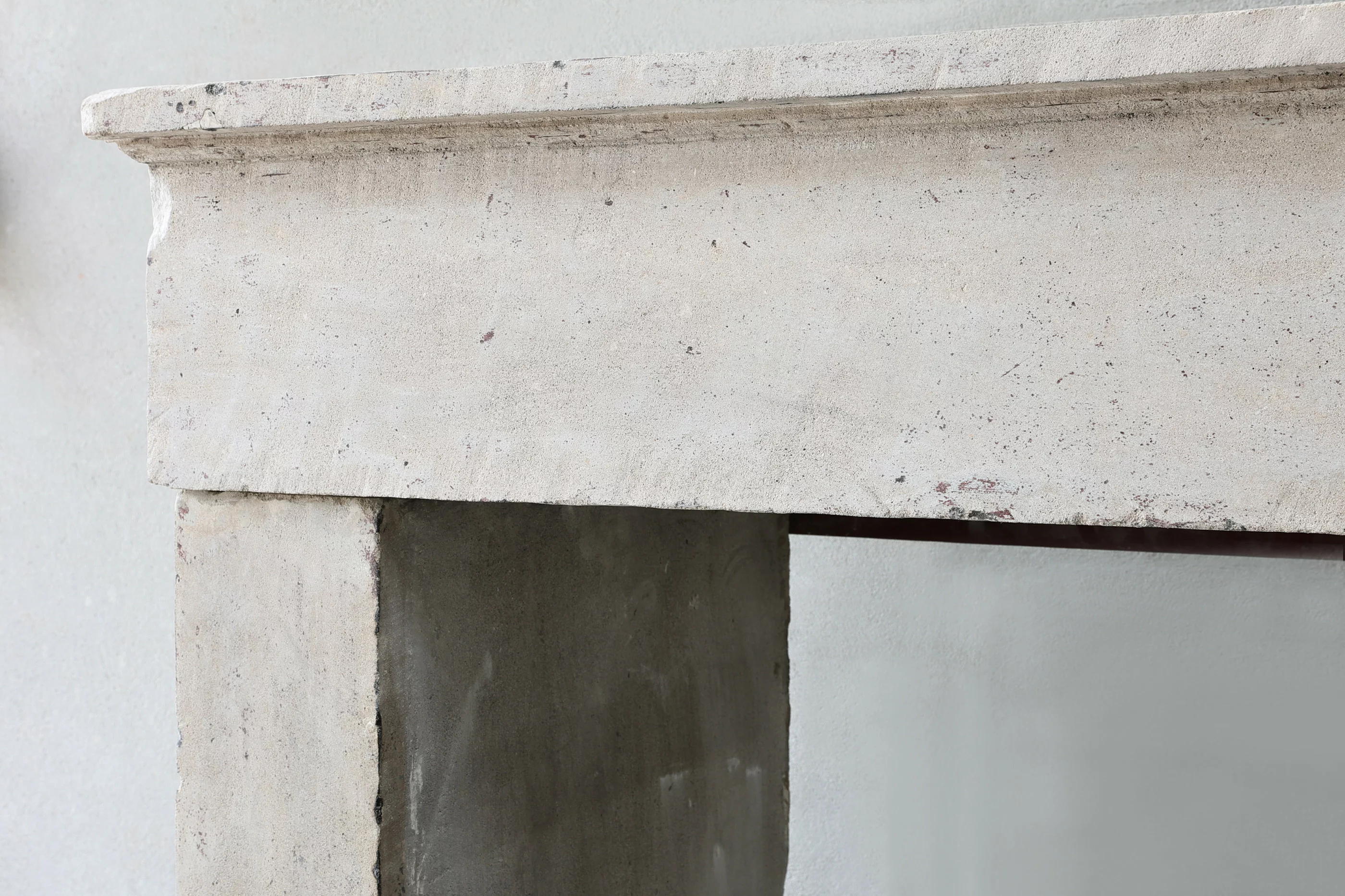 Wunderschöner rustikaler Kamin aus französischem Kalkstein aus dem 19. Jahrhundert! Ein sehr schöner Kamin in unserer Sammlung antiker Kaminsimse. Ein Kaminsims mit warmem Aussehen, geraden Beinen und zugänglicher Größe. Passend für viele Innenräume.