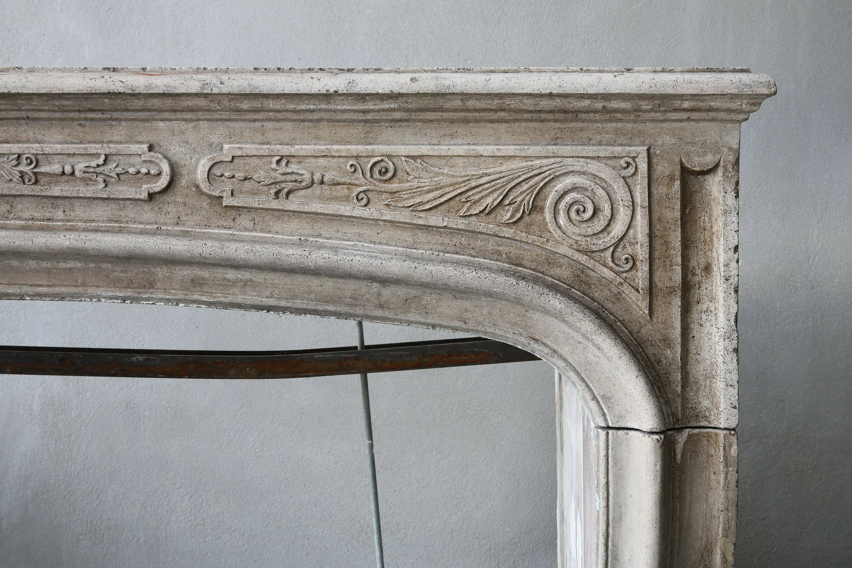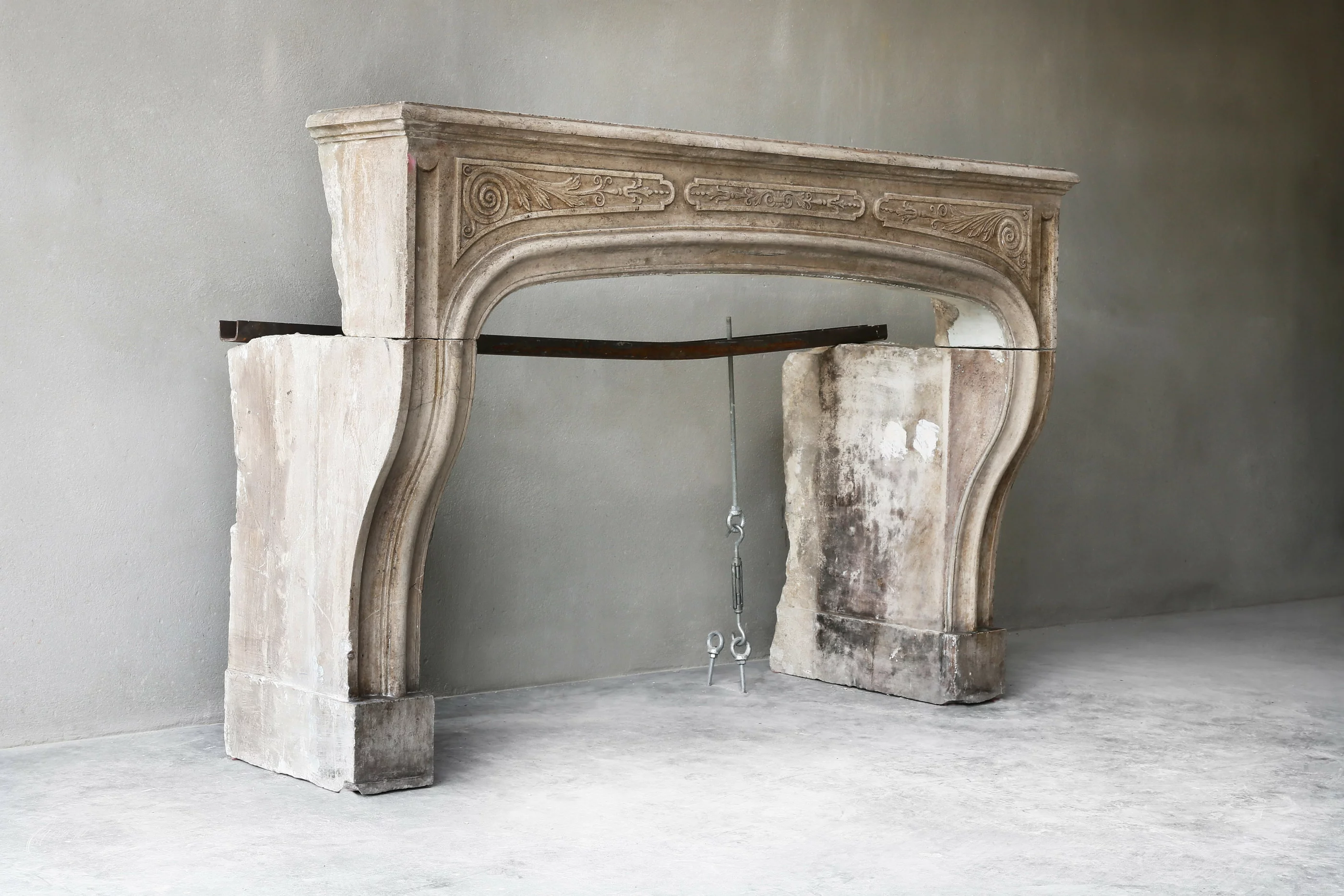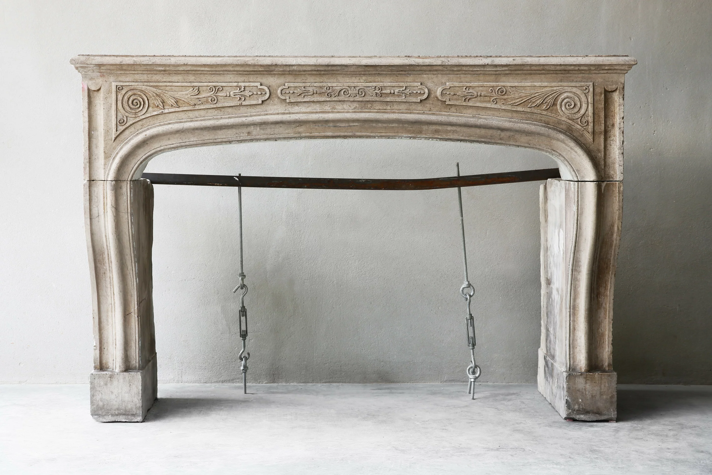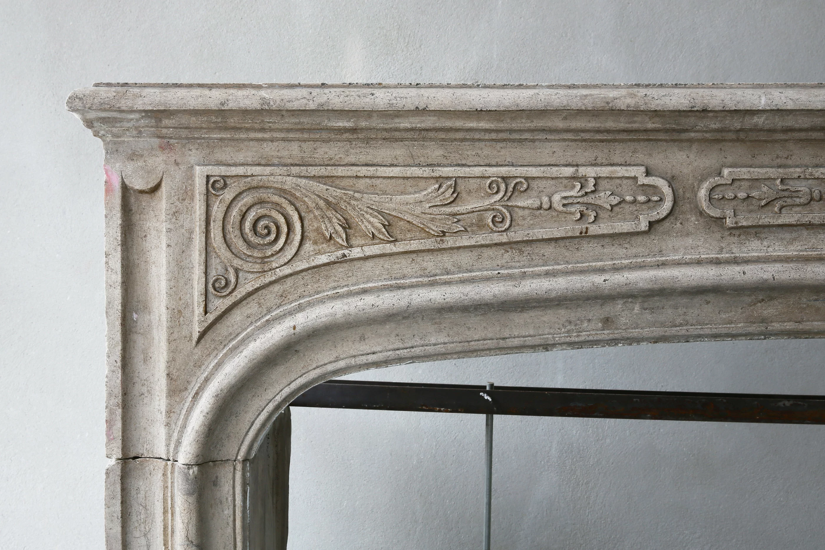 Schöner verzierter antiker Kamin aus dem 19. Jahrhundert. Ein Kamin mit Charakter und Geschichte! Der Kamin ist im vorderen Bereich reich mit verschiedenen Ornamenten verziert. Die Kurven machen den Kamin elegant und stilvoll. Dieser Kamin aus französischem Marmor ist in warmen Farben gehalten.