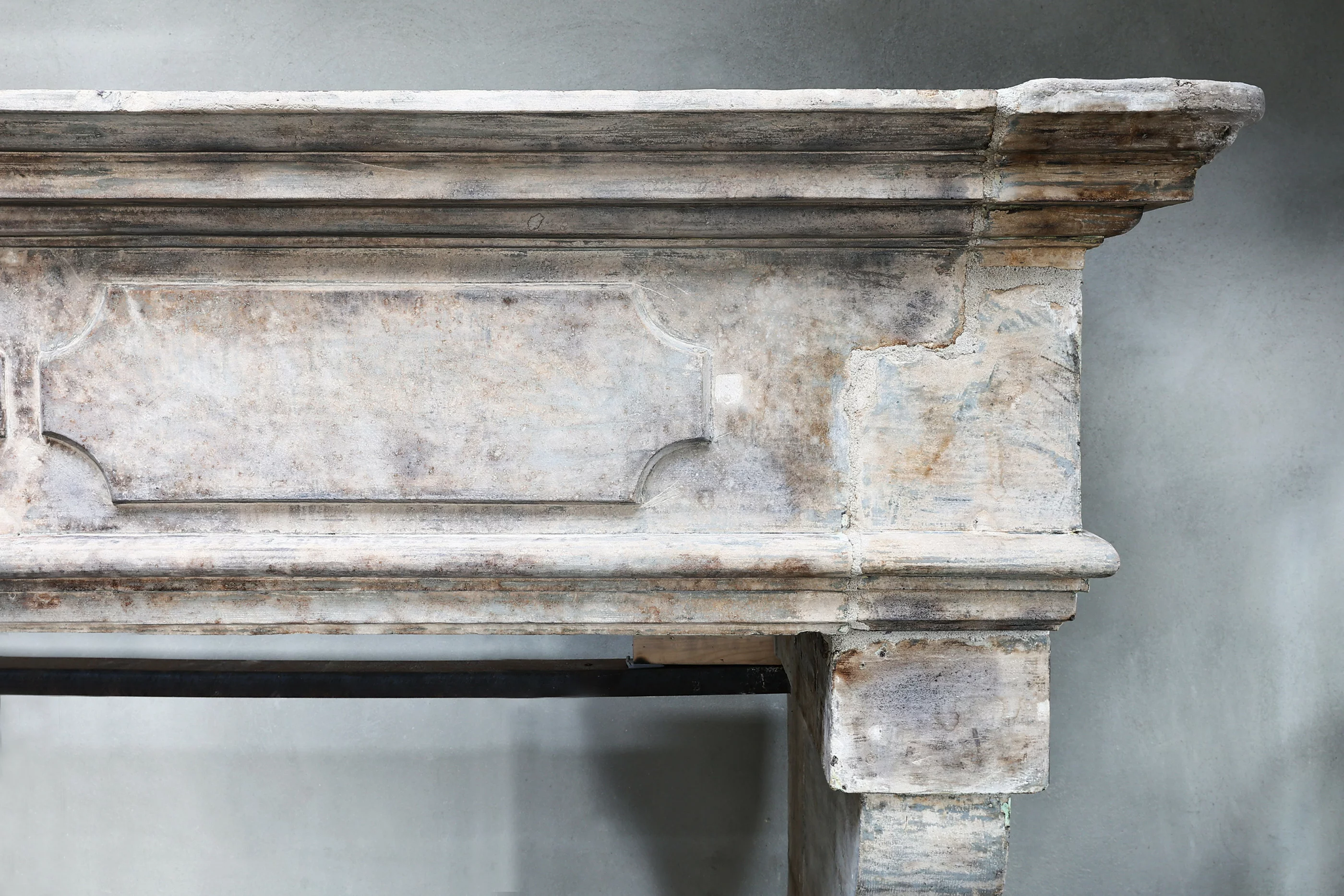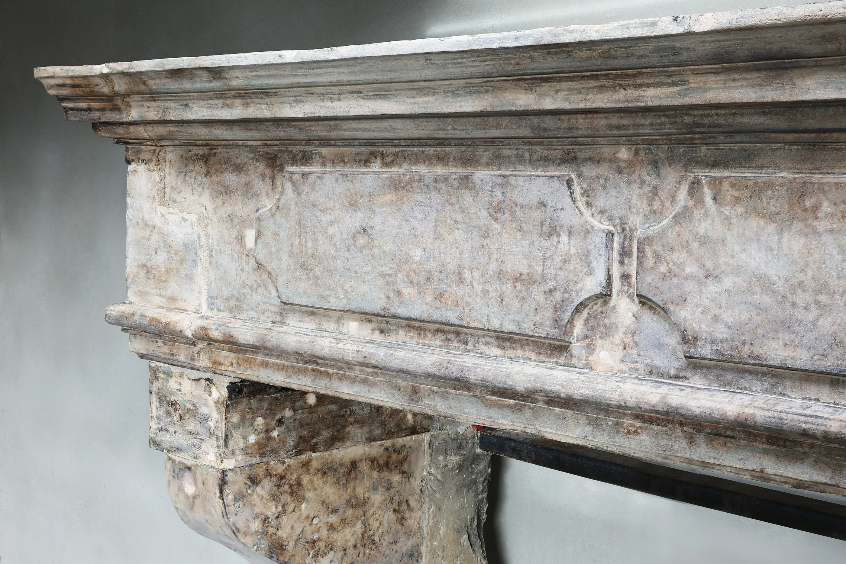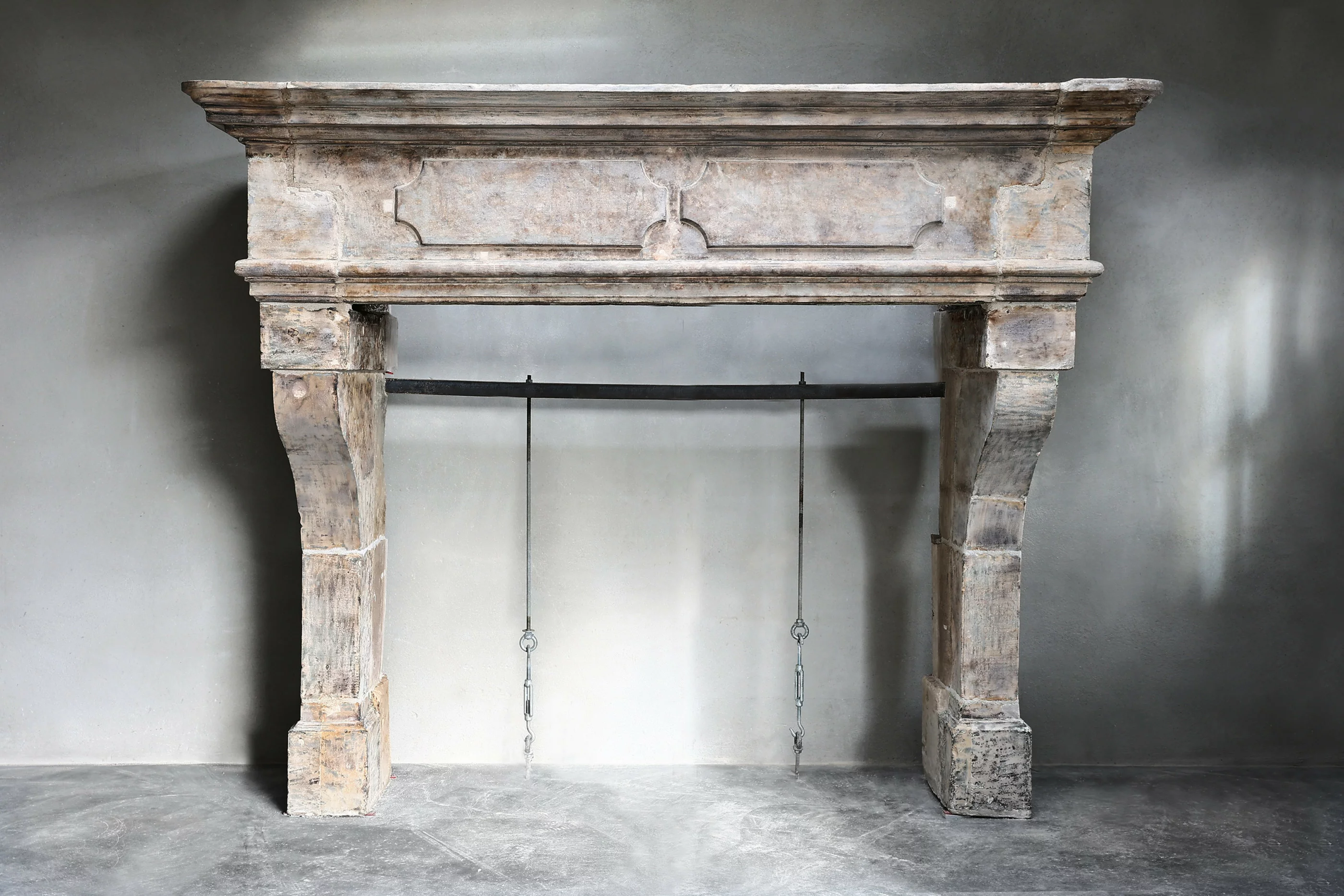 Wunderschöner robuster Schlosskamin aus französischem Kalkstein! Dieser Kamin aus dem 19. Jahrhundert hat schöne Ornamente im vorderen Teil und hat leicht geschwungene Beine und eine breite Oberseite. Es ist ein Kamin im Stil von Louis XIII und hat eine Breite von 235 cm!