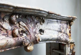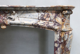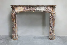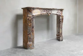 Schöner antiker Kamin aus Breche de Medou Marmor im Stil von Regence Pompadour. Ein Kamin aus einem besonderen bunten Marmor aus Frankreich! Dieser Kamin stammt aus den Jahren 1870 - 1880. Ein Juwel für jedes Interieur!