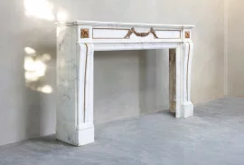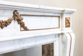 Schöner antiker Kamin aus Arabescato-Marmor! Arabescato ist eine Marmorsorte, die aus dem Apennin nördlich von Carrara in Italien gewonnen wird. Arabescato-Marmor wurde schon immer geädert. Dieser Kamin stammt aus dem Jahr 1880 und ist im Louis XVI-Stil mit einem bronzenen Bandeau de Perles und Girlande!