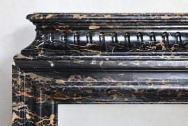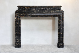 Schöner einzigartiger Kamin aus Portoro Marmor. Portoro Marmor hat seinen Ursprung in Italien und ist ein sehr schöner warmer Marmor in dunkelbraun/schwarz mit schönen geflammten Adern! Dieser antike Kamin stammt aus dem 19. Jahrhundert und ist im Stil von Louis XIII. Ein sehr schöner Kamin mit Riffelung im vorderen Teil und schönen Linien.