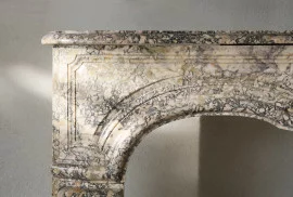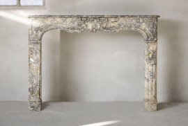 Exklusiver antiker Kamin aus Breche-Marmor. Breche Marmor stammt ursprünglich aus Italien. Die gelb/graue Farbgebung schafft eine warme Atmosphäre! Dieser Kamin stammt aus dem frühen 19. Jahrhundert und ist ganz im Stil von Louis XV. Der Stil von Louis XV ist an seiner anmutigen Form erkennbar und weist in der Mitte oft eine Jakobsmuschel auf. Marmor ist ein wunderschöner Naturstein, der jedes Mal einzigartig ist und für viele Anwendungen verwendet werden kann.