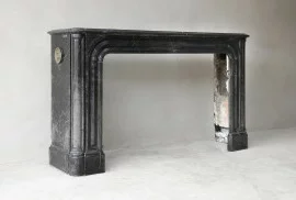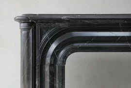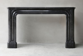 Schöner antiker Marmorkamin aus Nero Marquina Marmor. Diese Art von Marmor stammt aus dem Norden Spaniens. Bei diesem Marmortyp sieht man weiße Adern, im Gegensatz zu Noir de Mazy-Marmor, der einheitlich schwarz ist. Dieser Kamin stammt aus dem 19. Jahrhundert und ist im Stil Louis XIV. Ein schönes Modell wegen der Schlichtheit und der runden Formen. Wirklich ein schöner Marmor, der chique ist und in ein klassisches und modernes Zuhause passt.