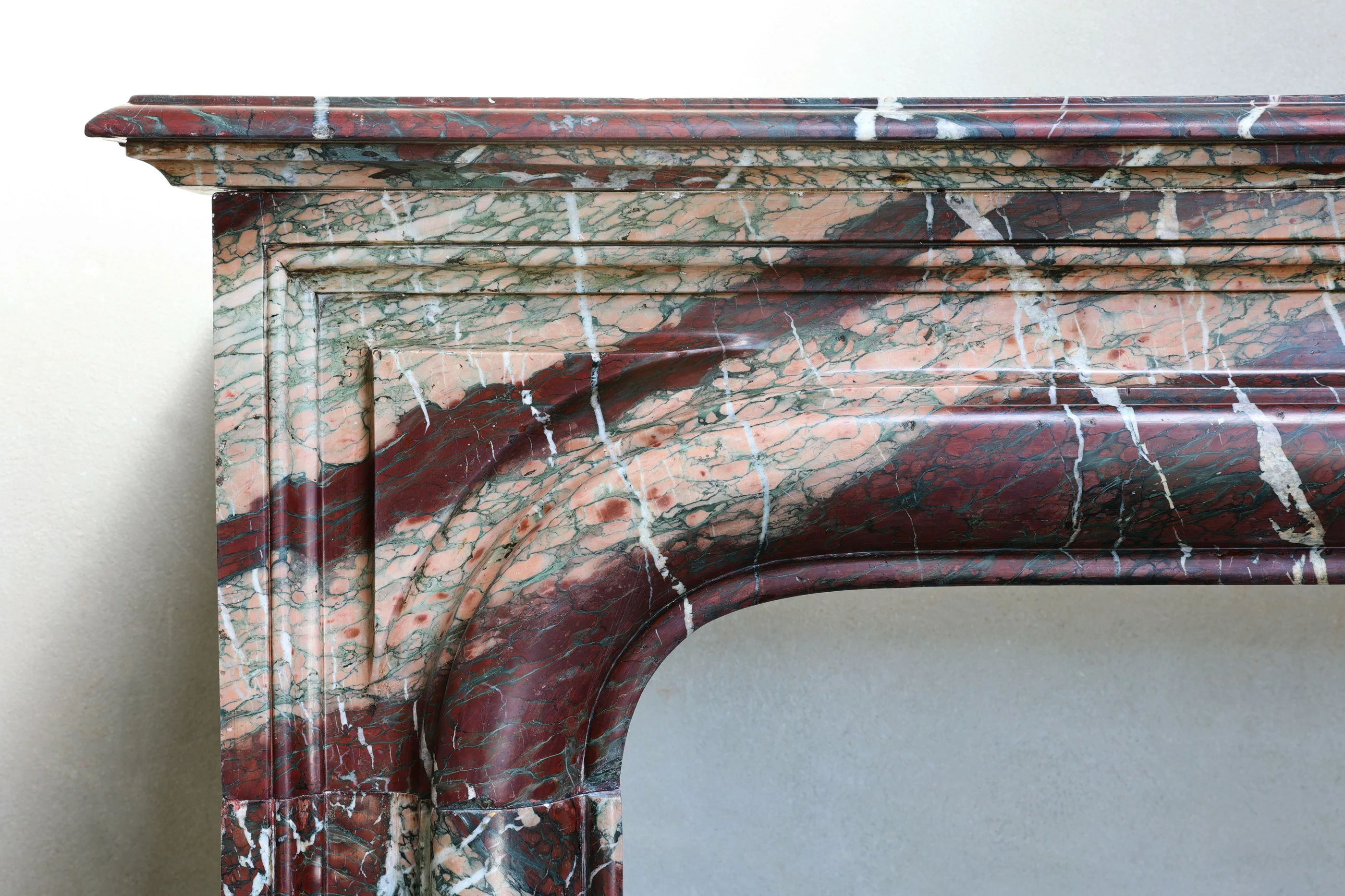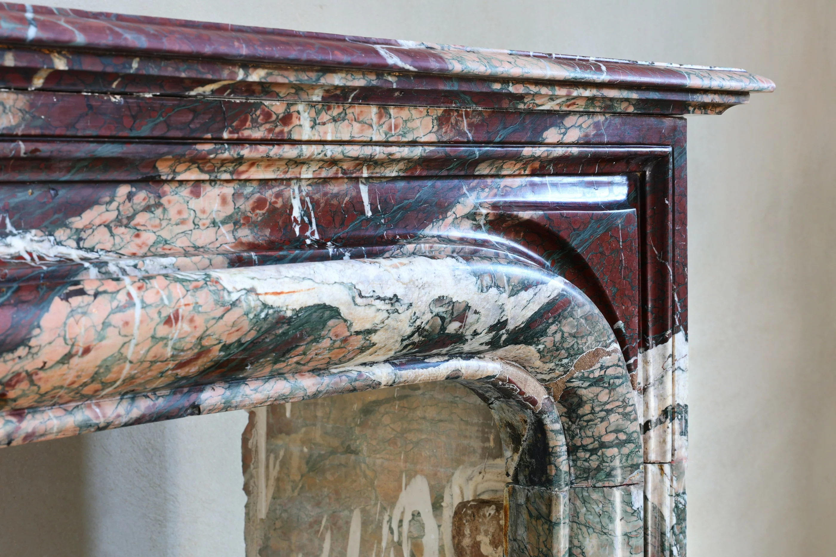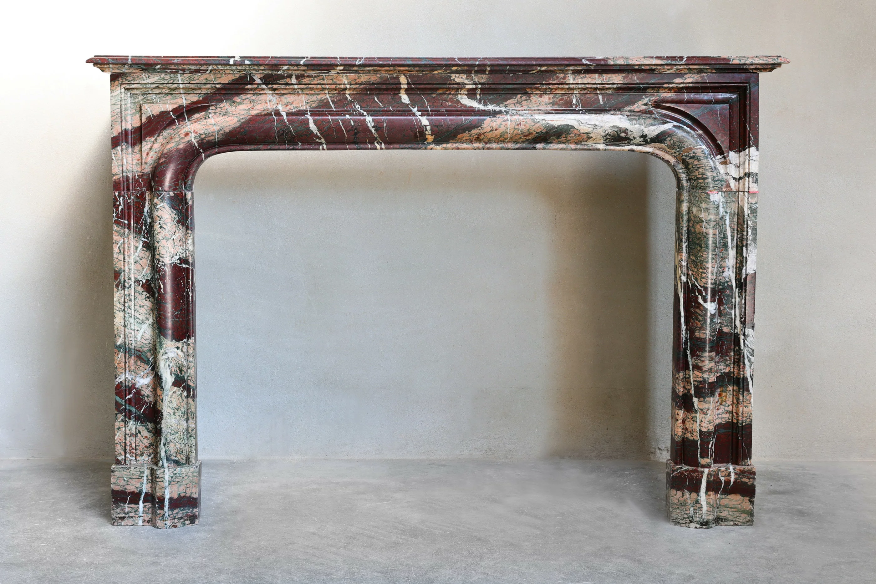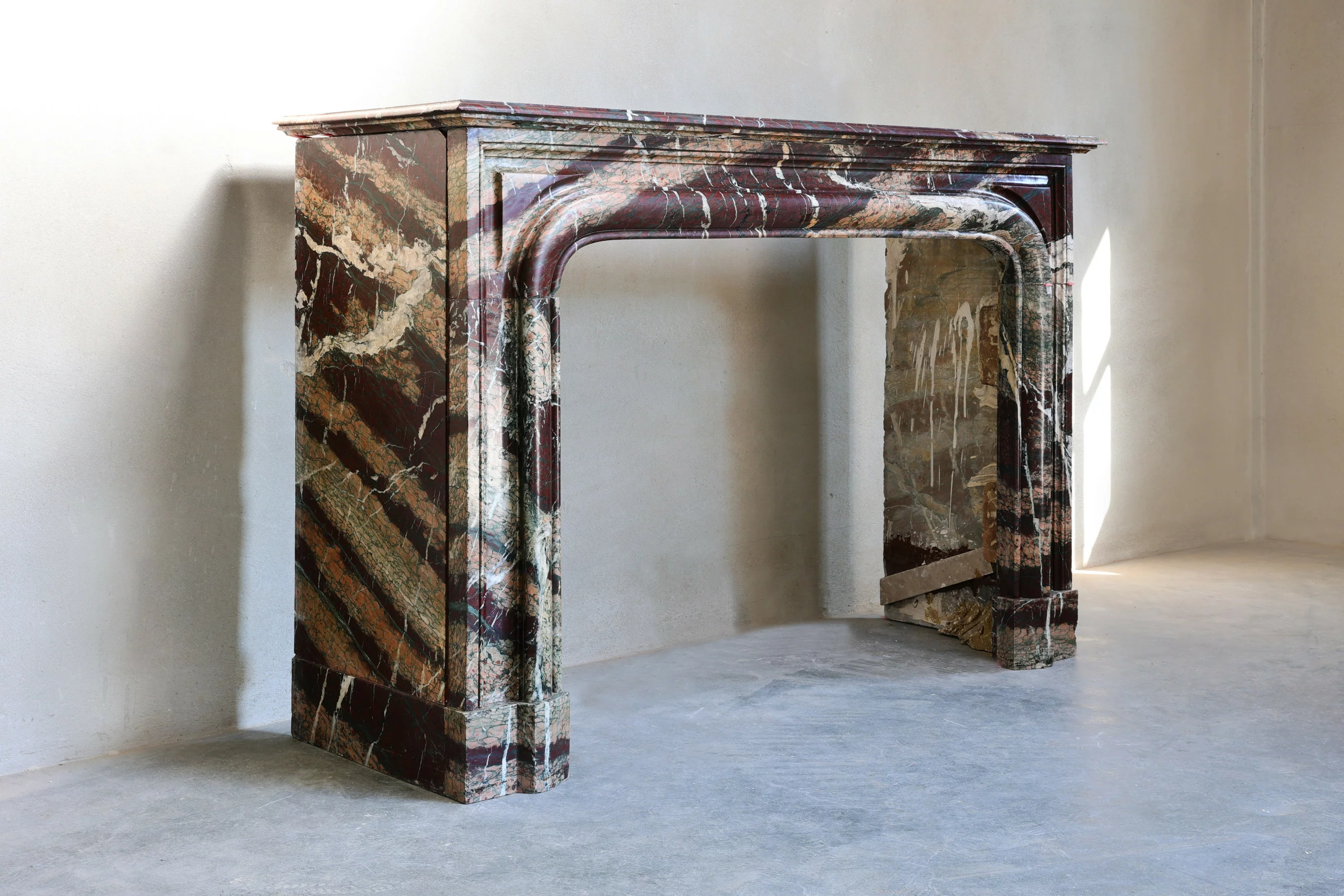 Ein wunderschöner antiker Kaminmaske der besonderen Marmorart Campan Rubane! Ein einzigartiger Kamin im Stil von Louis XIV mit schönen Linien von 1850 - 1860. Die Marmorsorte hat eine warme Farbgebung und es ist sehr schön zu sehen, wie dieser Marmor in der Natur entstanden ist!