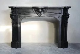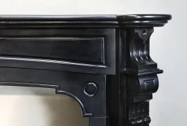 Sehr schöner antiker Kamin aus Noir de Mazy Marmor aus dem 19. Jahrhundert. Dieser Kamin ist im Stil von Louis XIV und hat wunderschöne verzierte Ornamente, die in den Kamin eingearbeitet sind! Ein anmutiger, schicker Kamin mit Aussehen und Charme, der perfekt in ein elegantes Interieur passt!