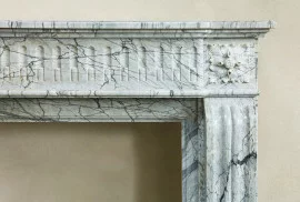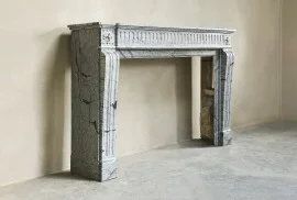 Ein wunderschöner blauer Fleuri-Marmorkamin aus dem 19. Jahrhundert im Stil von Louis XVI. Ein gerades Modell mit vielen Riffelungen im Vorderteil und durchgehend an den Beinen! Die Abmessungen sind auch perfekt proportioniert und passen gut in ein elegantes, modernes oder neues ländliches Interieur!