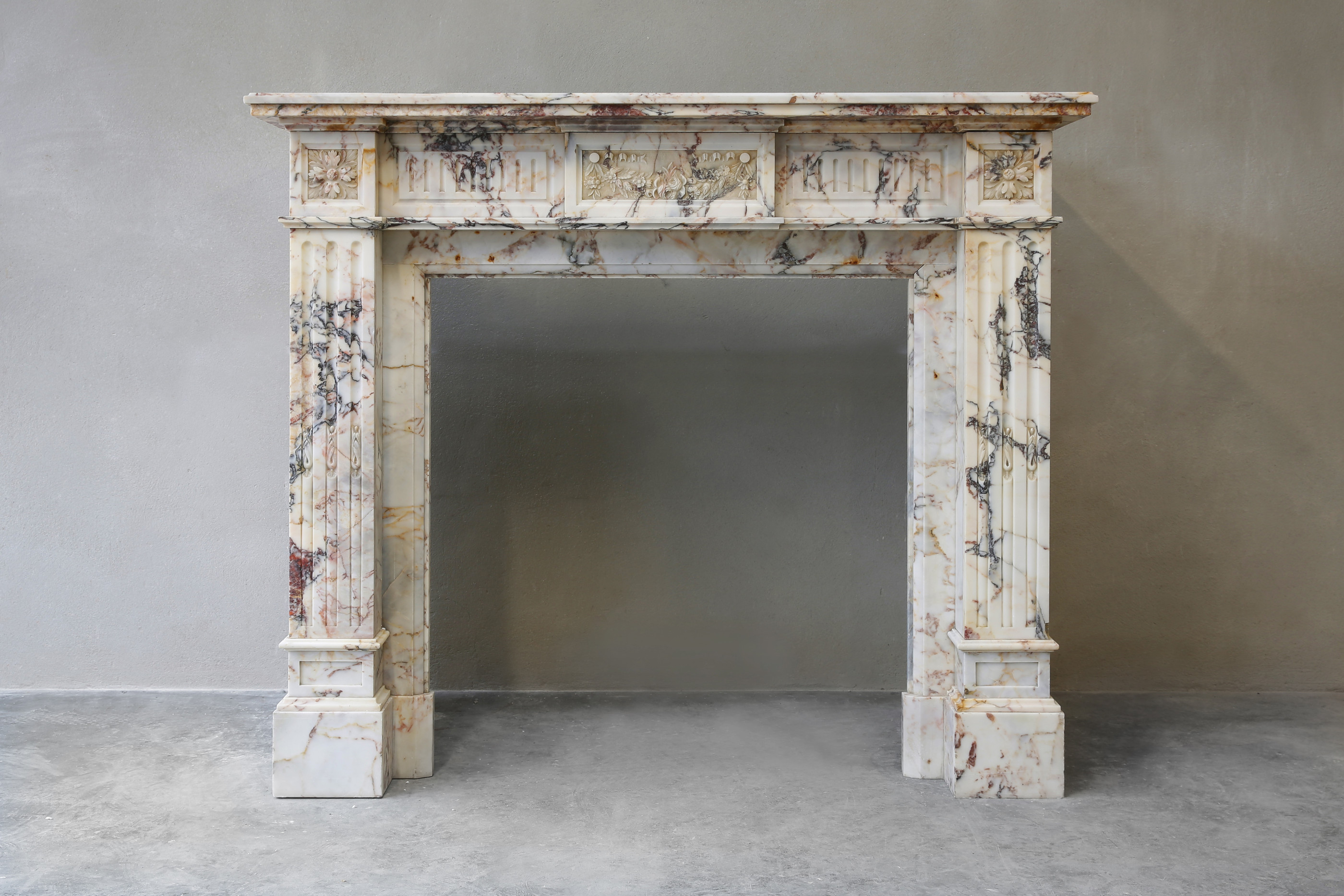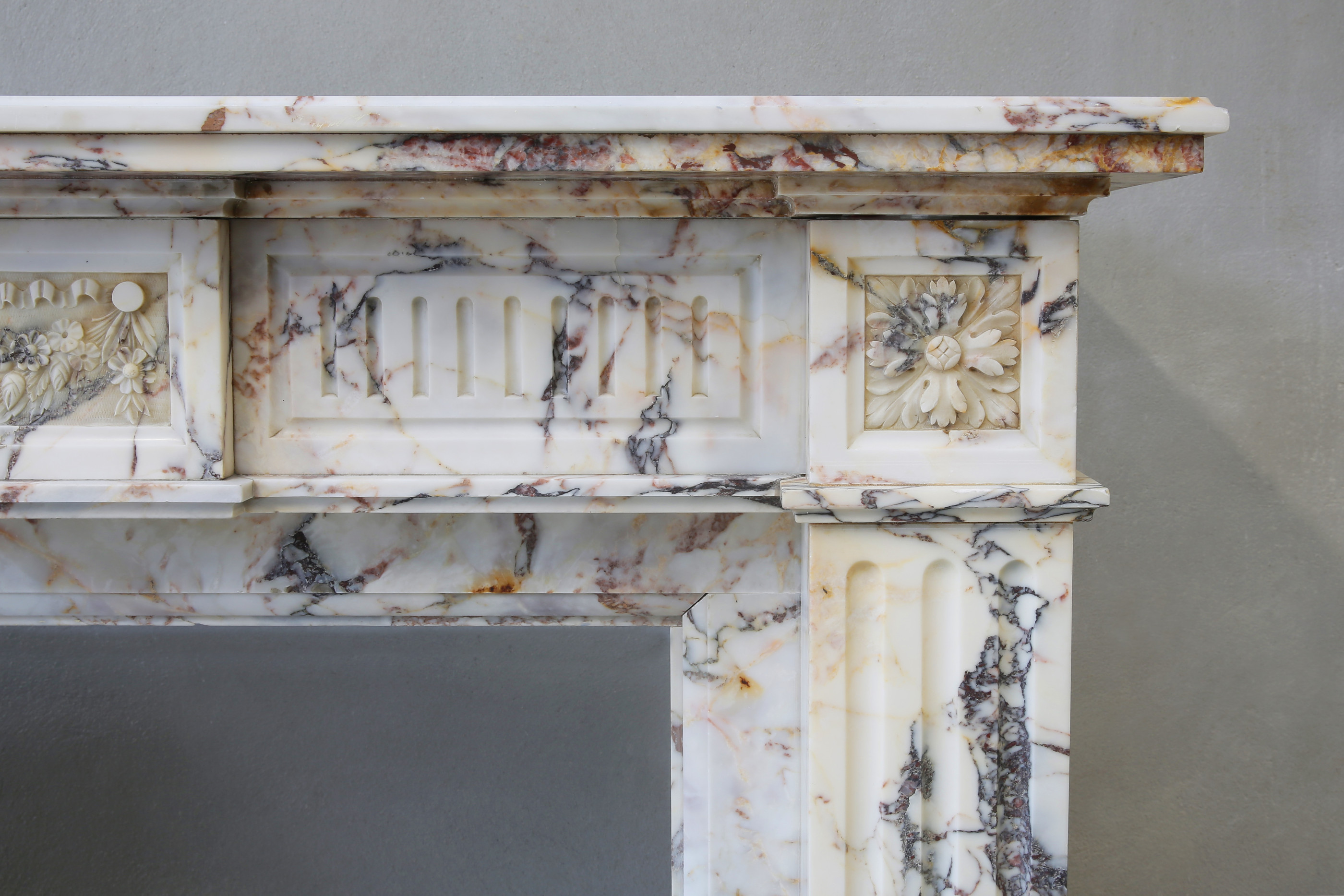 Schöner eleganter antiker Kamin aus Breche-Marmor. Dieser Kamin stammt aus dem 19. Jahrhundert und ist im Stil von Louis XVI. Das warme Farbschema in Kombination mit den schlanken Formen macht diesen Kamin zu einem wertvollen Mantel in unserer Kollektion!