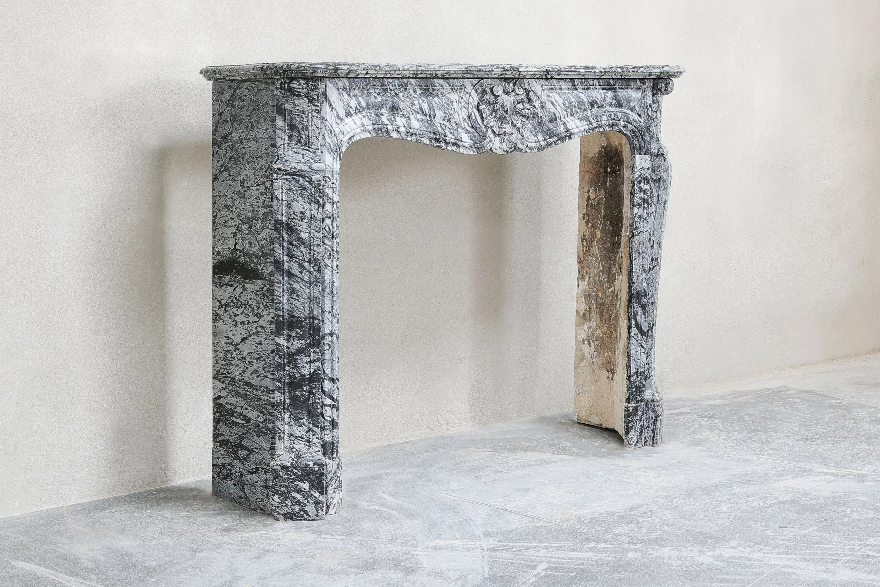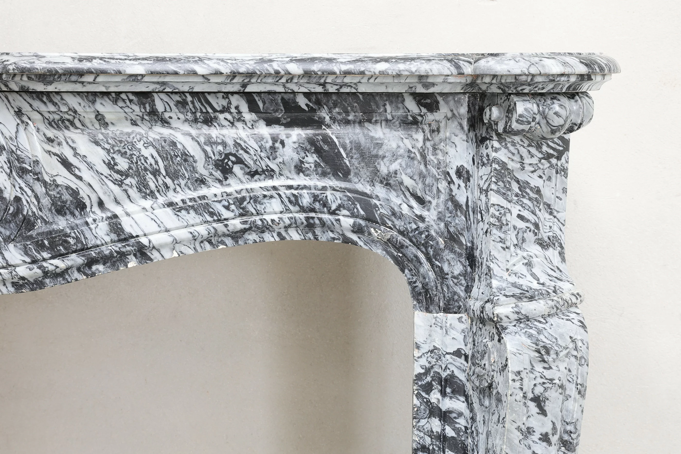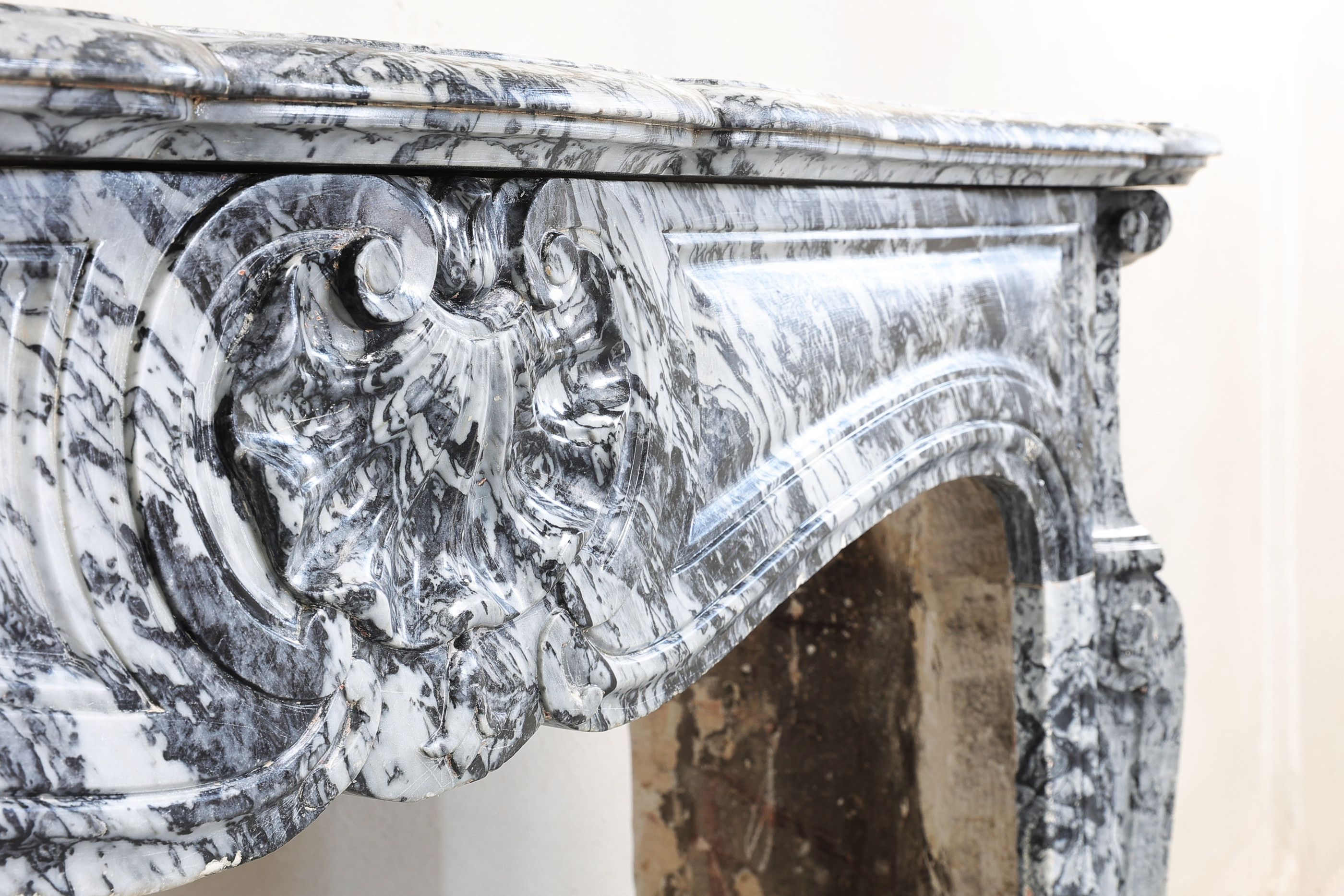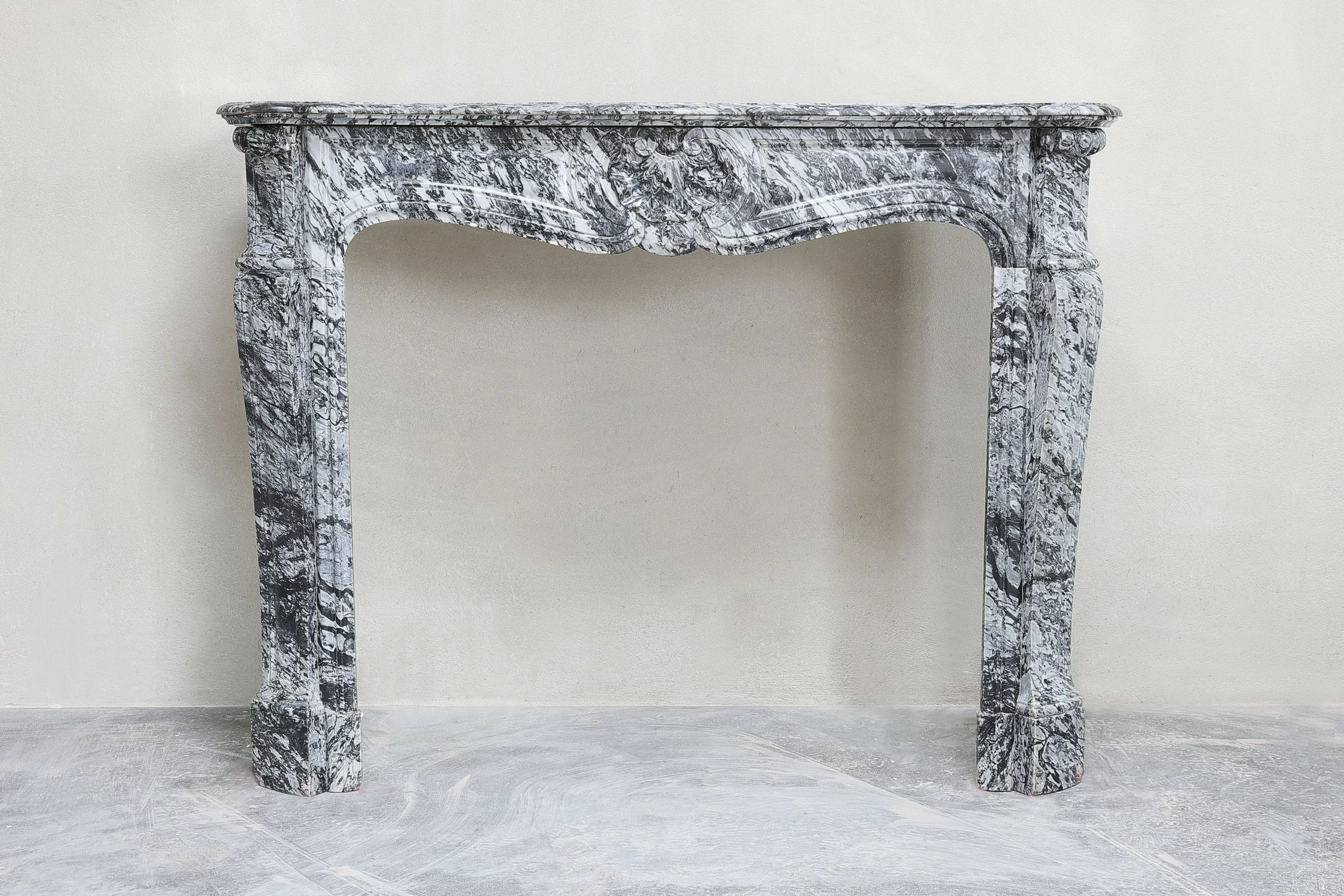 Schöner antiker Kamin aus blauem Fleuri-Marmor! Dieser Kamin ist im Louis XV-Stil und hat eine Jakobsmuschel in der Mitte. Der Kamin stammt aus dem 19. Jahrhundert und ist in gutem Zustand.