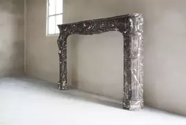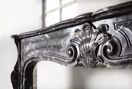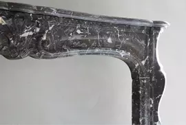 Wunderschöner antiker Marmorkamin aus dem 18. Jahrhundert! Die Marmorspezies ist Bois Jourdan. Der Kamin ist ein Louis de XV. Aus dieser Zeit heraus schauen die schönen Dekorationen. Dieser Schatten ist auch durch die Kokette in der Mitte und schöne Moulure (Framing) gekennzeichnet.