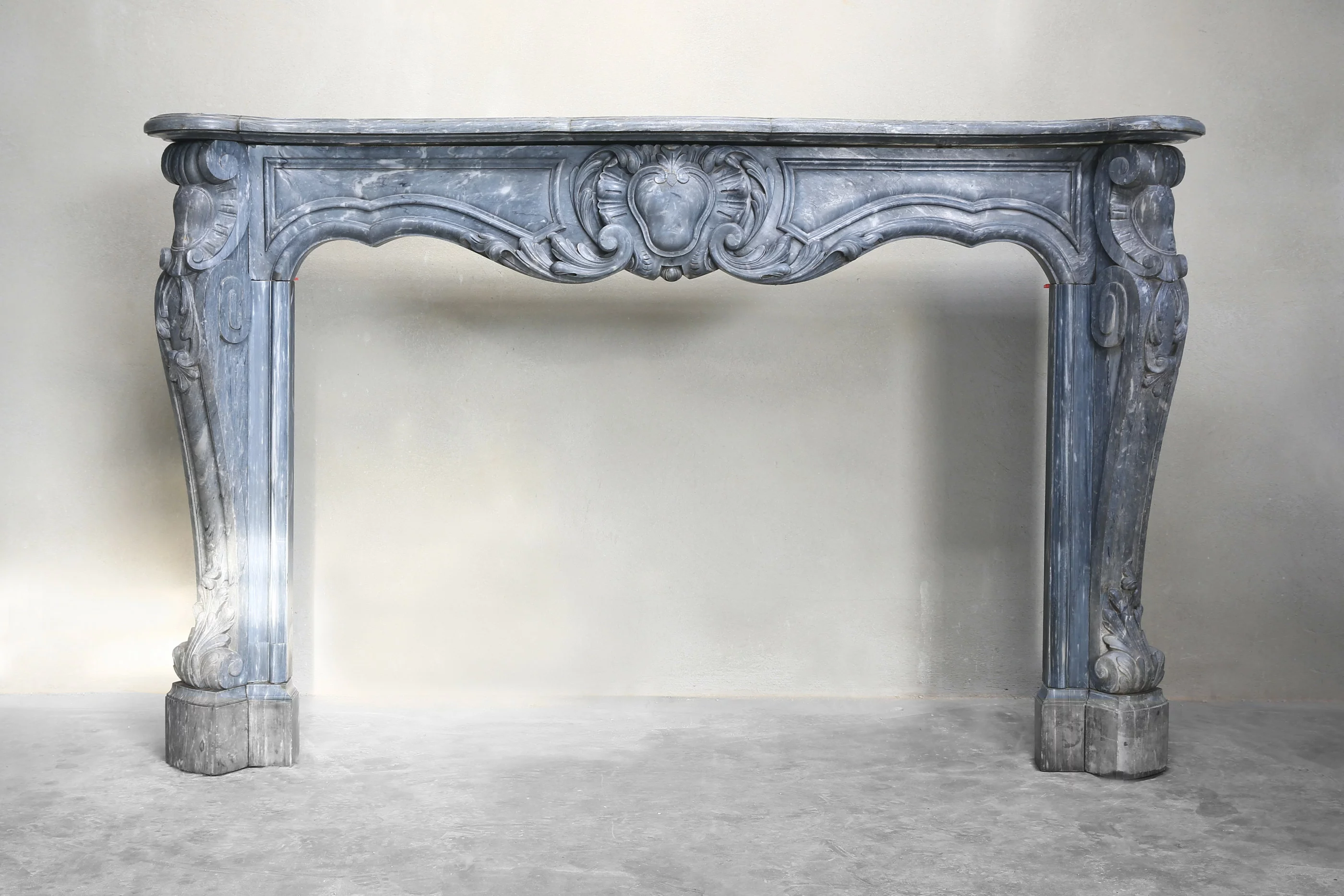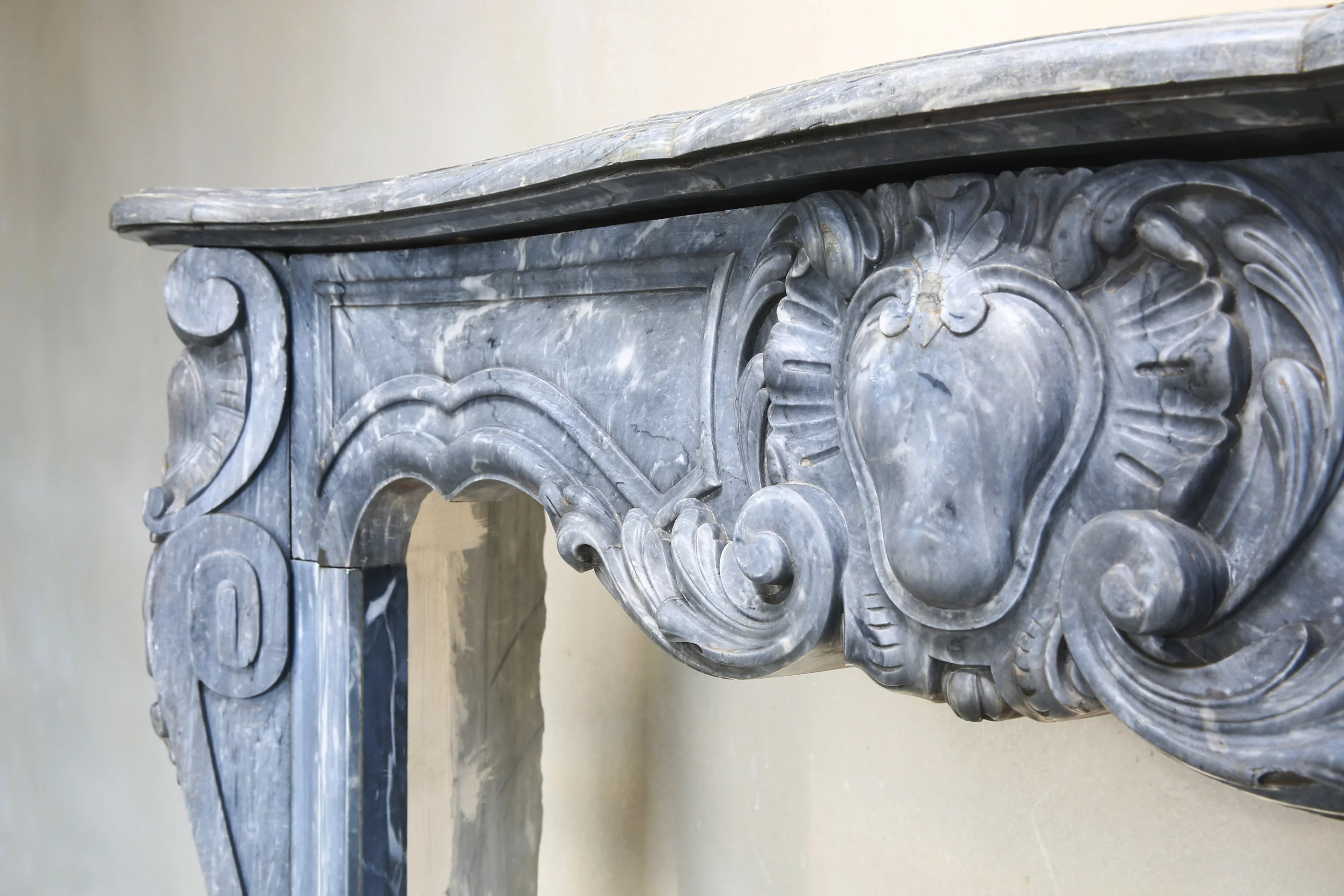 Dies ist ein Juwel in unserer Sammlung antiker Marmorkamine! Ein einzigartiger Kamin im Stil von Louis XV aus dem 18. Jahrhundert. Dieser schöne Kamin hat schöne runde Formen und Ornamente. Schauen Sie sich die schönen Elemente im Vorderteil und an den Beinen an. Diese Farbe Marmor sieht man bei antiken Kaminen auch nicht oft. Der Marmortyp heißt Turquin und stammt ursprünglich aus Italien.