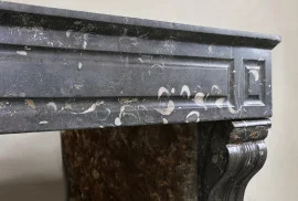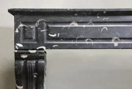 Wunderschöner antiker Kaminmaske aus wunderschönem schwarzem Marmor mit hellen Adern aus dem 19. Jahrhundert im Stil von Louis XVI. Dieser Kaminmaske hat eine warme Farbgebung und schöne gerade Formen! Ein schicker, antiker Kaminmaske mit kompakter Größe und elegantem Aussehen!