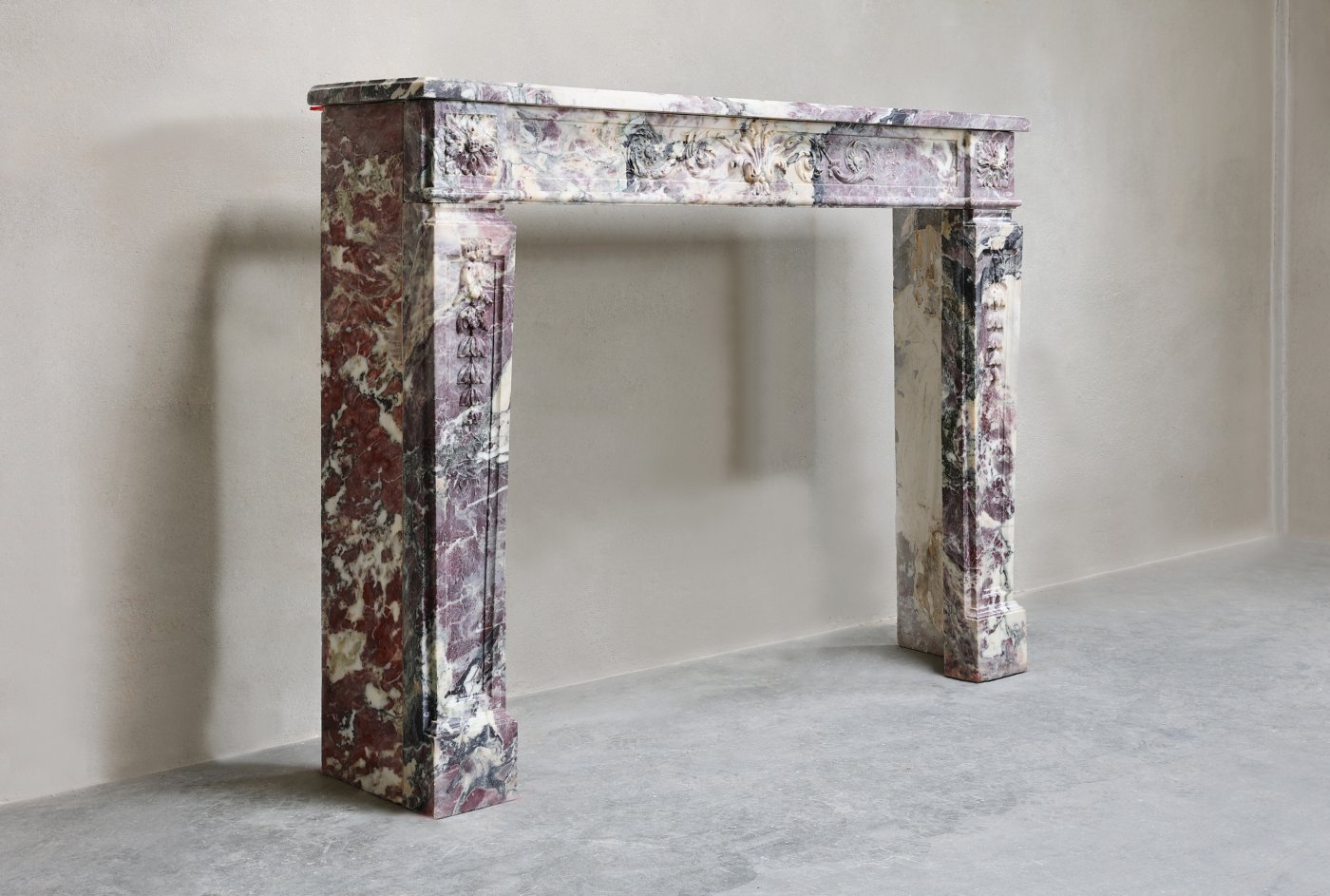 Antiker Marmorkamin von Breche Violetta Marmor