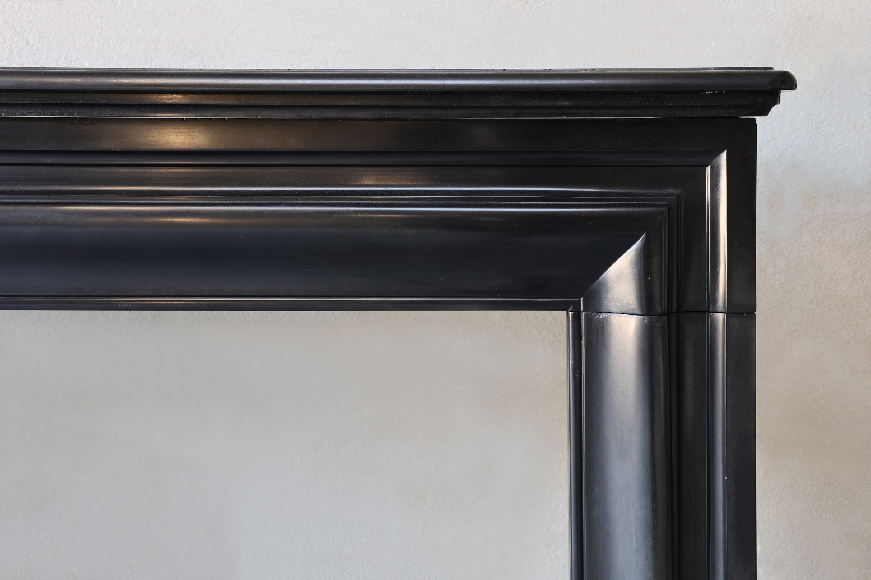 Dieser zeitlos elegante Kamin aus dem 19. Jahrhundert ist aus dem seltenen Noir de Mazy-Marmor gefertigt, dem tiefschwarzen belgischen Marmor, der für sein luxuriöses Aussehen bekannt ist. Dieser im raffinierten Louis-XVI-Stil ausgeführte Kamin strahlt pure Klasse und Handwerkskunst aus. Die klaren Linien und klassischen Proportionen machen es zu einem Prunkstück in jedem Interieur. Ein einzigartiges Erbstück mit Charakter.