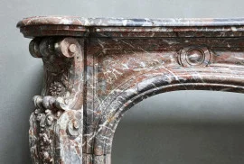 Dieser antiker Marmorkamin ist ein wahres Meisterwerk im Louis XV-Stil, bekannt für seine wunderschönen Kurven und feinen Schnitzereien. Gefertigt zwischen 1840 und 1860, stammt er aus Luik (Lüttich), Belgien. Der Kamin besteht aus exquisitem belgischem Sant-Remy-Marmor und zeigt die herausragende Handwerkskunst und außergewöhnliche Detailgenauigkeit dieser Epoche. Die feinen Schnitzereien unterstreichen die Kunstfertigkeit und das Können der Steinmetze und Bildhauer, was diese Kaminumrandung zu einem einzigartigen und eleganten Blickfang macht.