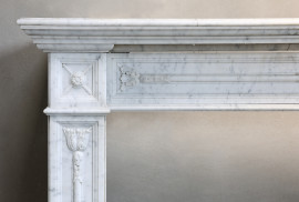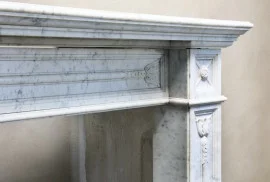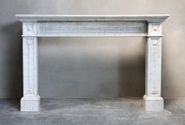 Antiker Kamin von Arabescato-Marmor aus dem 19. Jahrhundert im Stil Louis XVI. Dieser Kamin stammt aus dem 19. Jahrhundert und hat schöne Verzierungen an der Oberseite und an den Beinen. Ein schöner gerader Kamin, der in verschiedene Einrichtungsstile passt! Das Blatt hatte einen Riss, der aber fachmännisch repariert wurde.