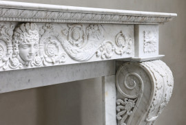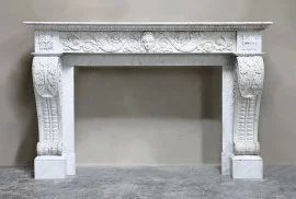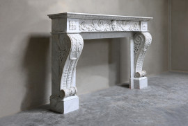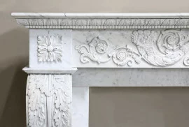 Wunderschön gefertigter antiker Kamin aus Carrara-Marmor. Dieser Kamin hat besondere Verzierungen und Verzierungen und sieht sehr schick aus! Die Beine sind gebieterisch und anmutig. Ein Kamin aus dem 19. Jahrhundert im Stil von Louis XVI. Ein besonderer Kamin mit einer angemessenen Breite von mindestens 165 cm.