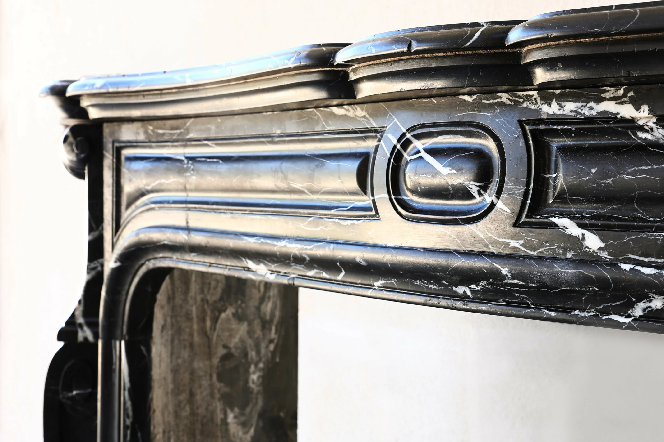 Entdecken Sie den 19. Jahrhundert Luxus: Antiker MarmorKamin im Pompadour-Stil. Unser exquisiter Kamin, inspiriert vom opulenten Stil Pompadour des 19. Jahrhunderts, besticht durch perfekte Proportionen und italienisches schwarzes Nero Marquinho-Marmor mit wunderschöner Maserung. Mit seiner reichen Herkunft aus einer Pariser Wohnung am Boulevard Haussmann wird er zum Blickfang in jedem Raum. Ob Sie nach einer eindrucksvollen Kaminsims oder einer Kaminumrandung suchen, wir bieten weltweiten Versand mit sicherer Verpackung. Tauchen Sie ein in den Luxus des Style Pompadour und verleihen Sie Ihrem Raum mit diesem historischen Meisterwerk zeitlose Eleganz."