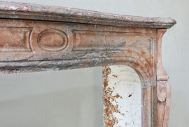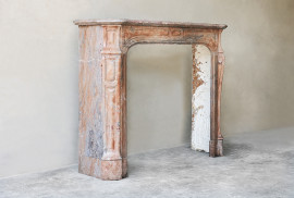 Sehr schöner antiker Kaminmaske aus dem warmen Sarrancolin-Marmor! Dieser Kamin ist im Pompadour-Stil gehalten und stammt aus dem 19. Jahrhundert. Diese Art von Marmor hat ein einzigartiges und elegantes Aussehen und ist ein Mehrwert für jedes Interieur.