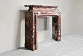 Wunderschöner antiker Kaminmaske aus Rouge Royal-Marmor. Diese warme Farbgebung sorgt für viel Atmosphäre und Optik! Ein einzigartiger Kamin unserer Sammlung aus dem 19. Jahrhundert im Stil von Louis XVI.